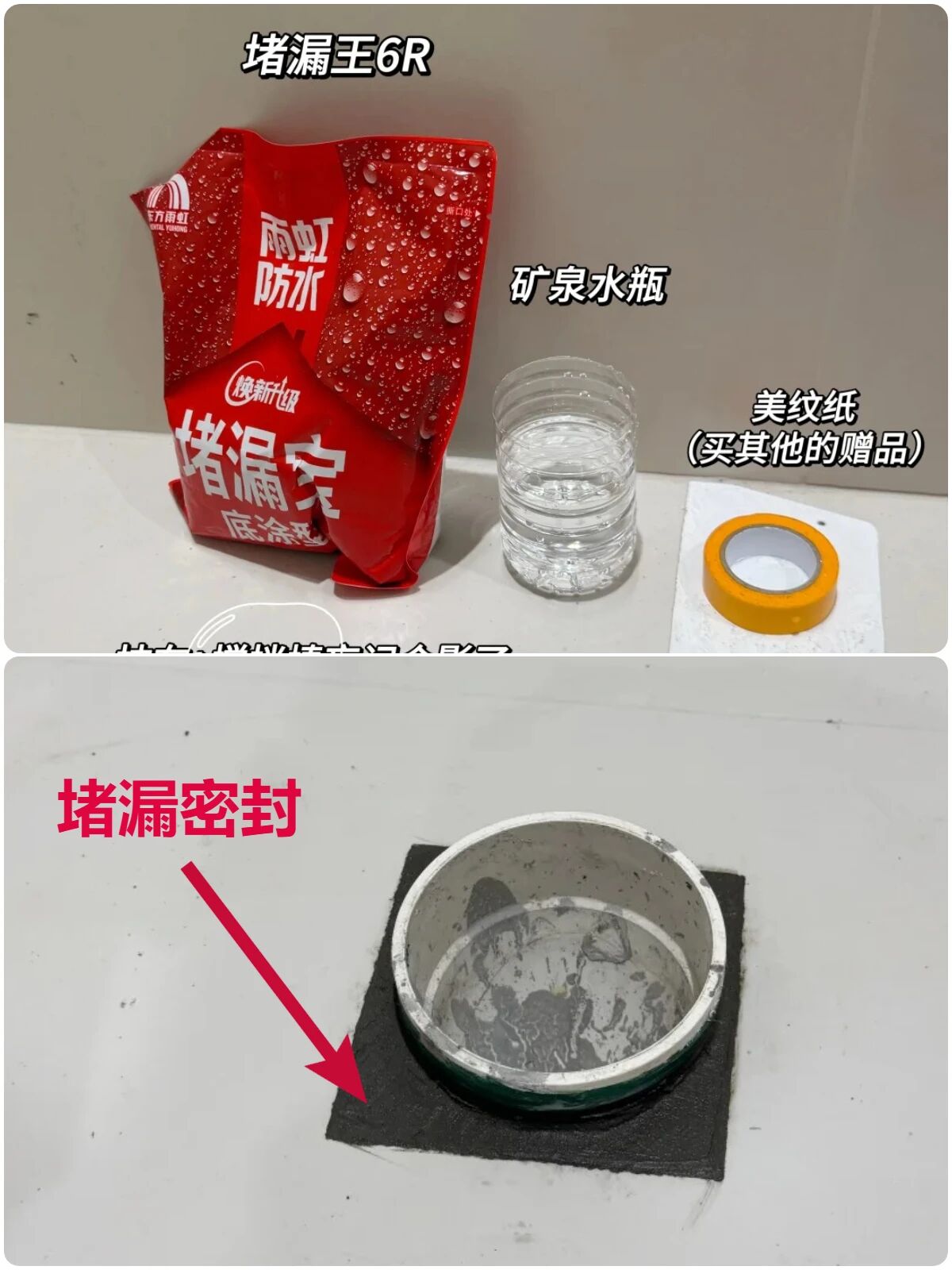 ▲堵漏比较简单,与水调配并搅拌,感觉浓度差不多了就行,搅拌好直接倒在缝隙凹陷处,小刮板把表面抹平等待凝固即可。法兰圈老化变形