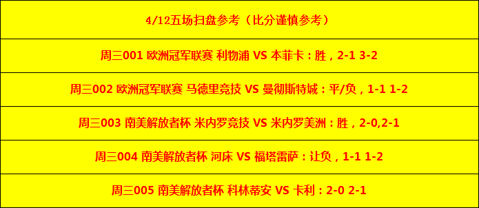周三004 南美解放者杯河床 VS 福塔雷萨河床:河床是上赛季阿甲冠军,且是目前南美排名第 1的球会,上赛季参赛不能小组