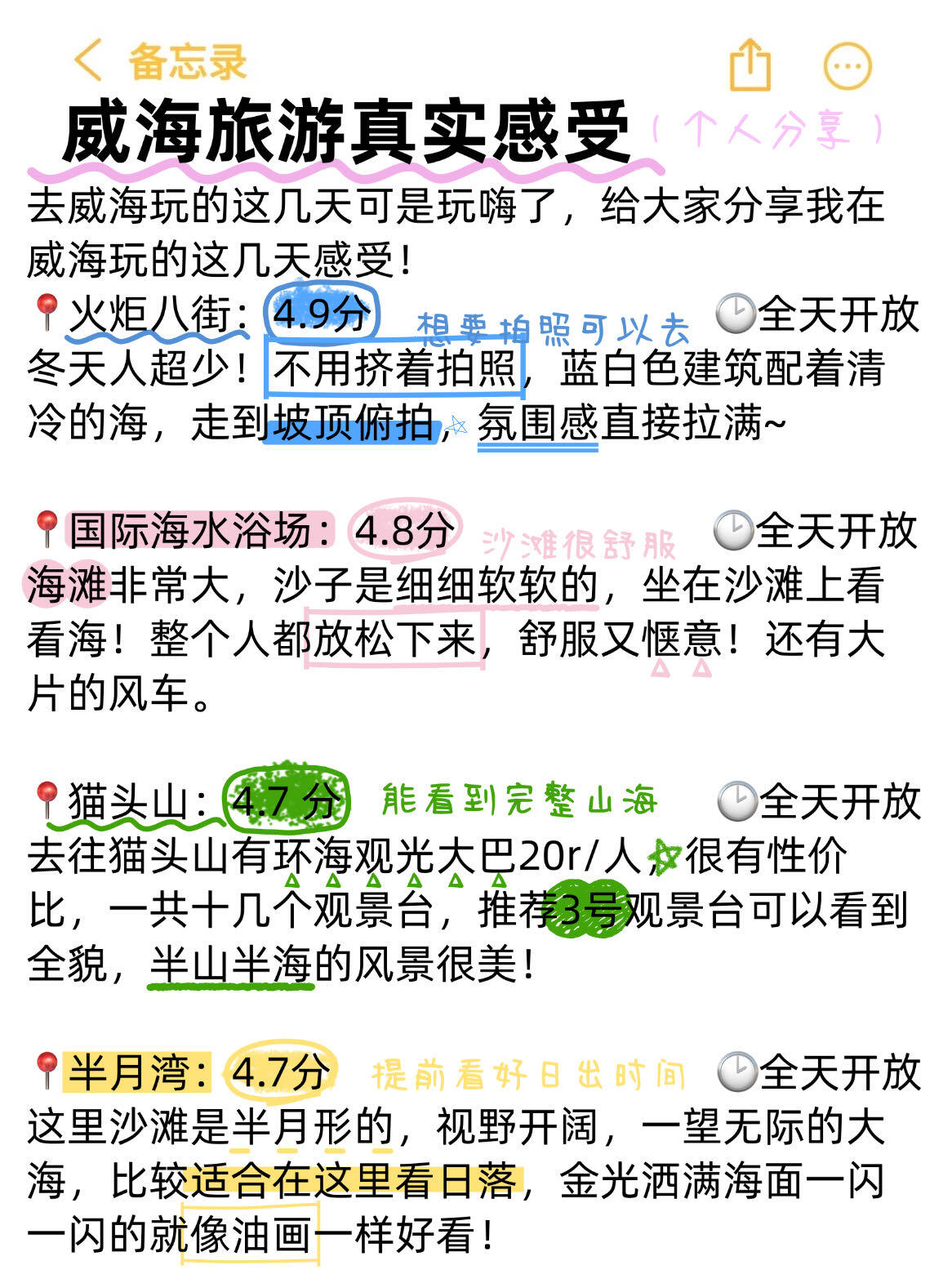 刚从威海回来跟大家分享一下,纯主观个人想法的真实感受🥹希望能帮即将要去威海玩的姐妹们☺每个人感受不一样大家理性看待