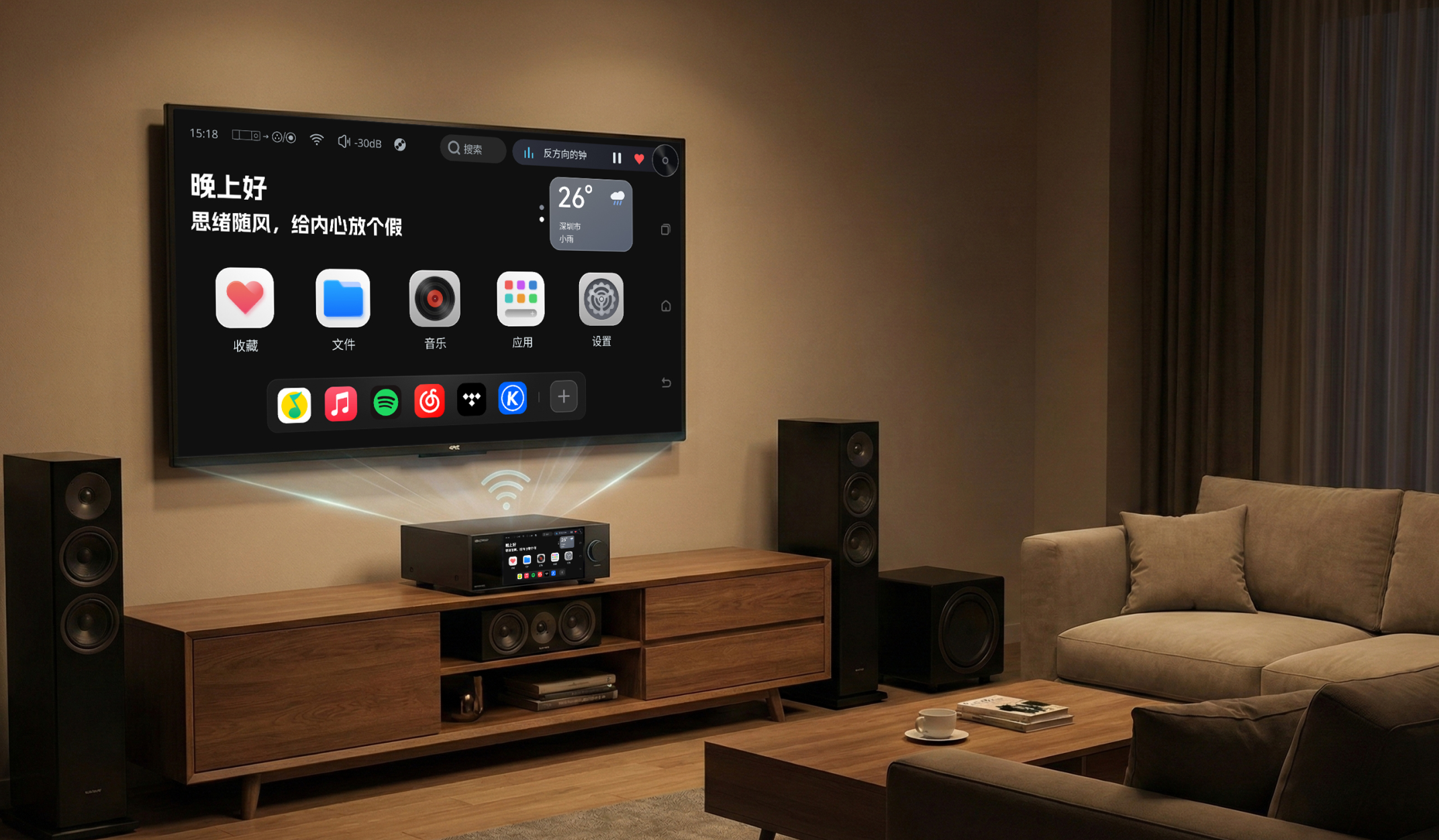 把PURE OS设备接到大屏电视或投影上,播放音乐时,大屏同步显示歌词、曲目信息,甚至连流媒体平台中的MV也能精彩呈现。想象一下,在寒冷的冬天,一家人围坐在客厅里,电视上播放着动人的MV,耳边是HIFI系统带来的优美音质,那种温馨的氛围,足以驱散冬日寒意。