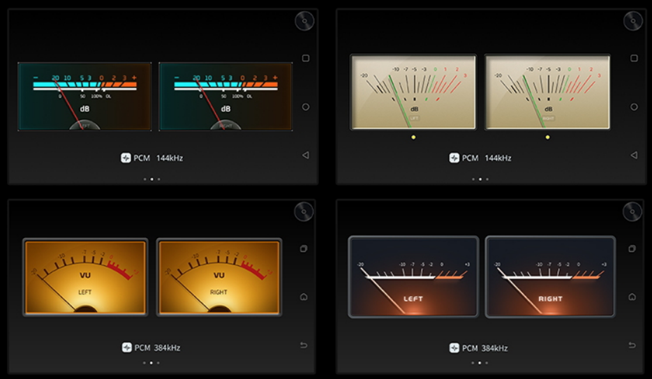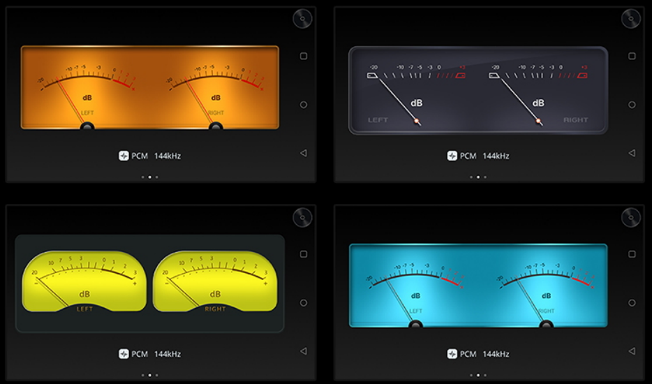 开博尔音频实验室的成员,可不只有埋头搞研发的工程师,还有六位专属UI视觉设计师。毕竟现在开博尔的OEM与ODM项目做得风生水起,要为友商设计各种产品外形与软件界面,审美这块儿必须在线。所以,PURE OS里提前内置了多款实时动态动画,其中,广受资深烧友青睐的,当属实时动态VU表。