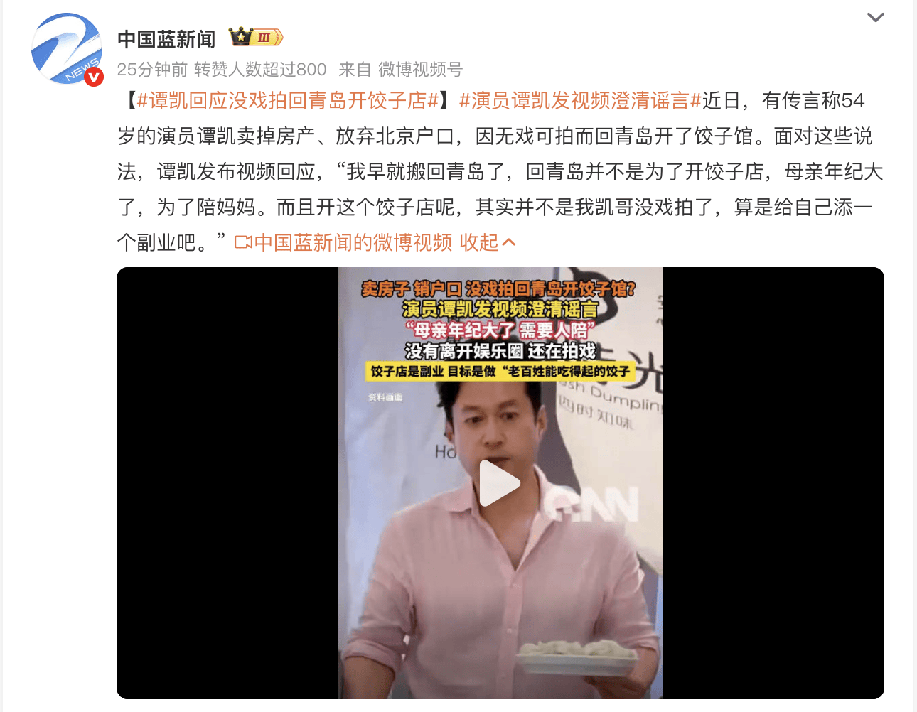 ​54岁谭凯辟谣卖房弃户口:回青陪母,饺子馆只是副业