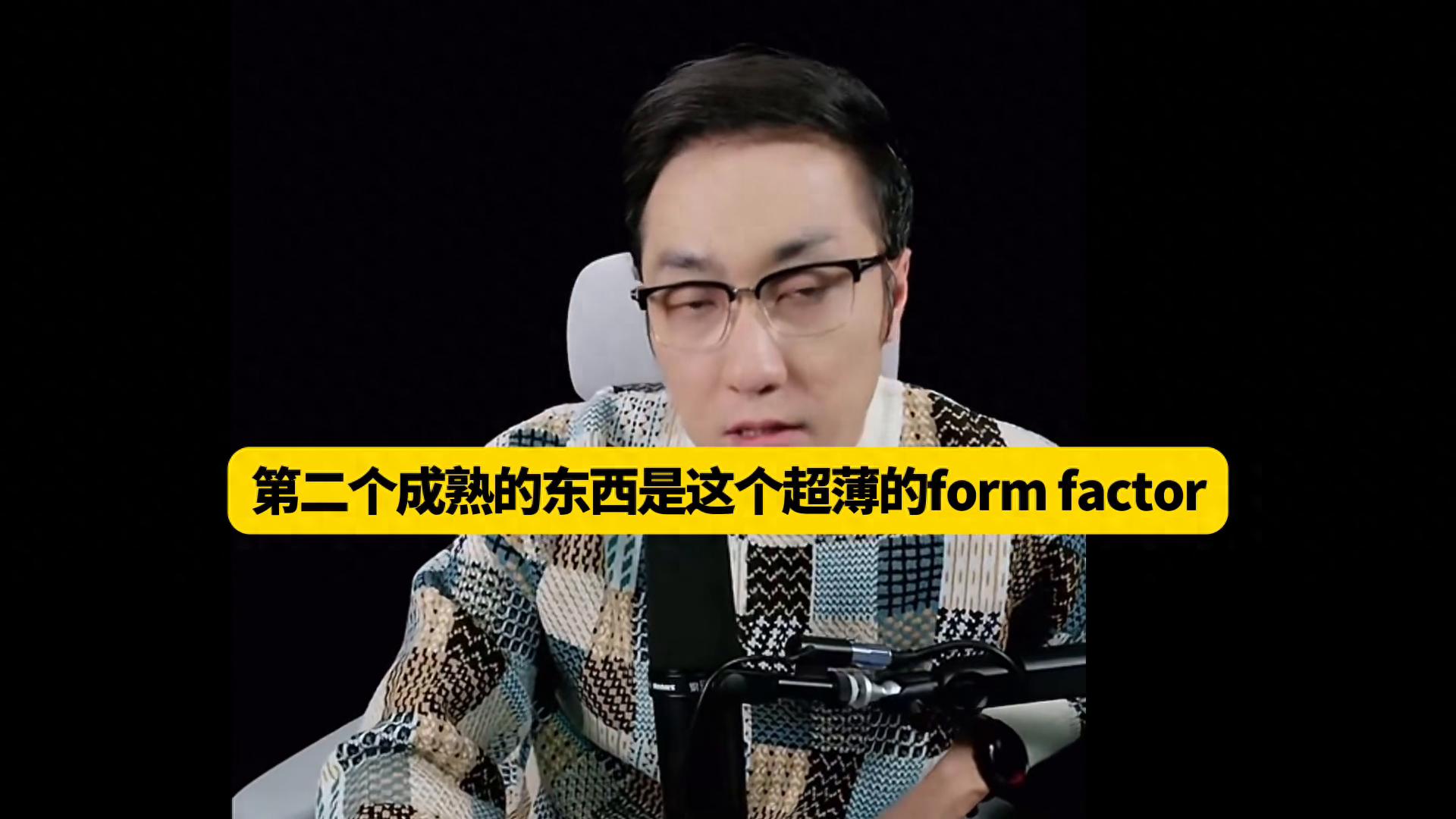·第二个成熟的东西是超薄的form factor,叫超薄设计。因为折叠屏其实就是两片超薄的手机拼在一起的,在今年air上也得到了一些工程上的验证和消费体验的验证。你会发现今年air虽然卖的不多,但是真正买air的人对它的评价都非常的高。就证明这个产品的形态和它的超薄的设计其实是受到了市场的肯定的。