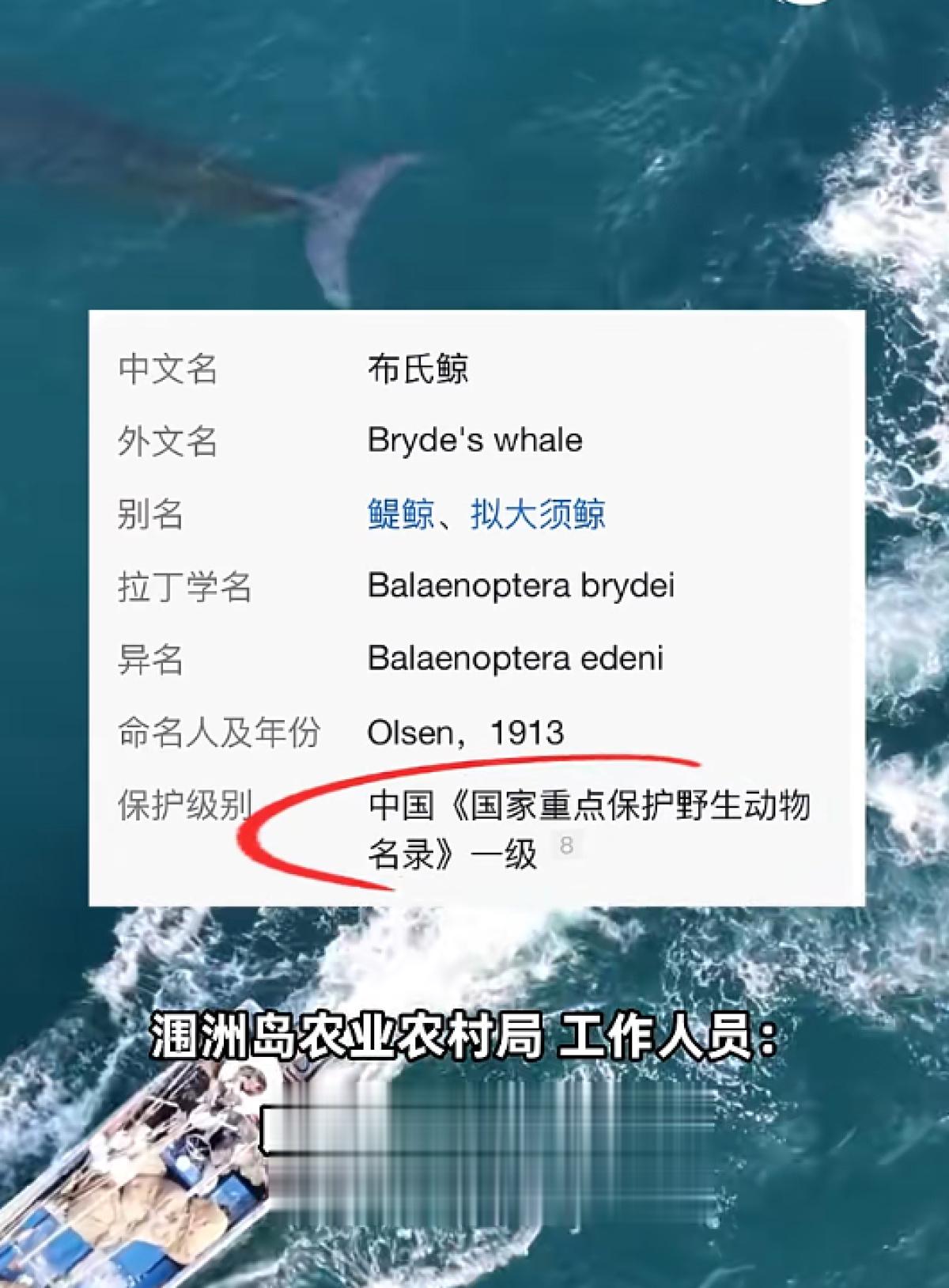 上述工作人员表示,针对布氏鲸的保护工作会有海洋部门处理。
