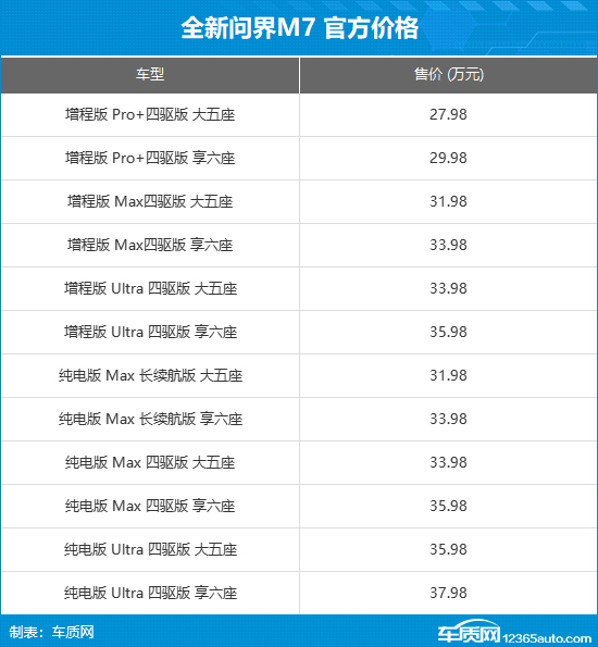 2025年9月23日,全新问界M7正式上市,新车共推出12款配置,售价区间为27.98-37.98万元。作为品牌旗下的中流砥柱以及销量担当,问界M7的换代可谓是看点十足,不仅在设计环节整体向家族化靠拢,而且在配置层面也得到了全面升级,综合竞争力更强。