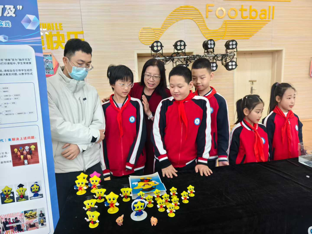 信息科技学科的《3D打印》项目最受瞩目。学生们不仅掌握了3D建模和打印技巧,更将这项技能应用于解决实际问题——为校园吉祥物“星宝儿”设计创意盲盒。一个个充满巧思的打印作品,尽显孩子们将科技与生活紧密联结的创新思维。北京教育科学研究院副院长张熙,北京教育科学研究院基础教育课程教材发展研究中心、基础教育科学研究所所长、研究员王凯一行对孩子们的作品青睐有加,连连夸赞这份奇思妙想的精彩落地。孩子们将这份3D打印的吉祥物“星宝儿”项目成果,郑重献给了亲爱的张熙副院长和王凯所长。