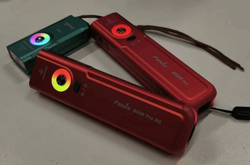 Fenix E06R Pro RG 延续了酷炫的开关氛围灯,以红、绿、白三色光源为核心,设计了R红色光源+G绿激光,打破传统手电单一照明的局限,兼顾实用照明与特殊场景需求,凭借紧凑机身与强悍性能,重新定义随身照明标准。