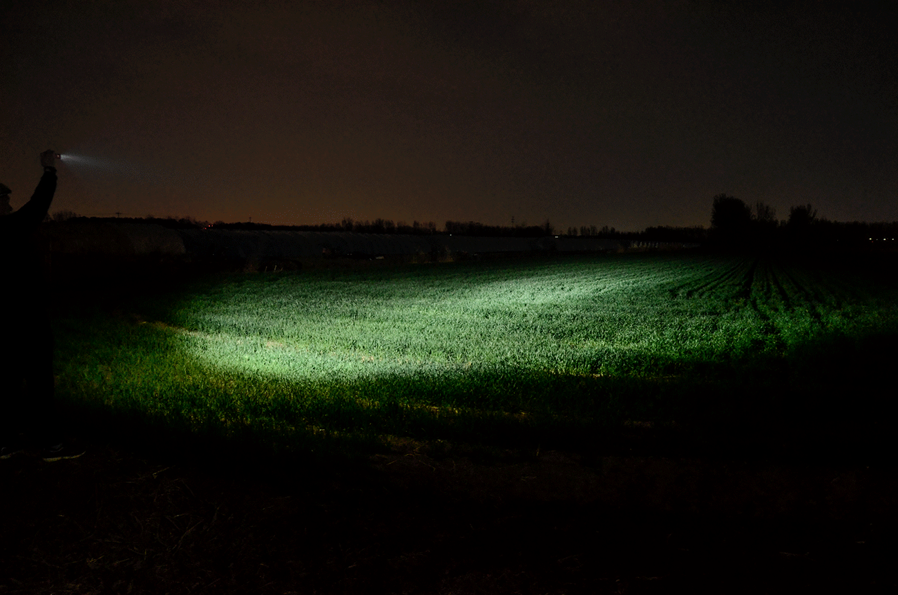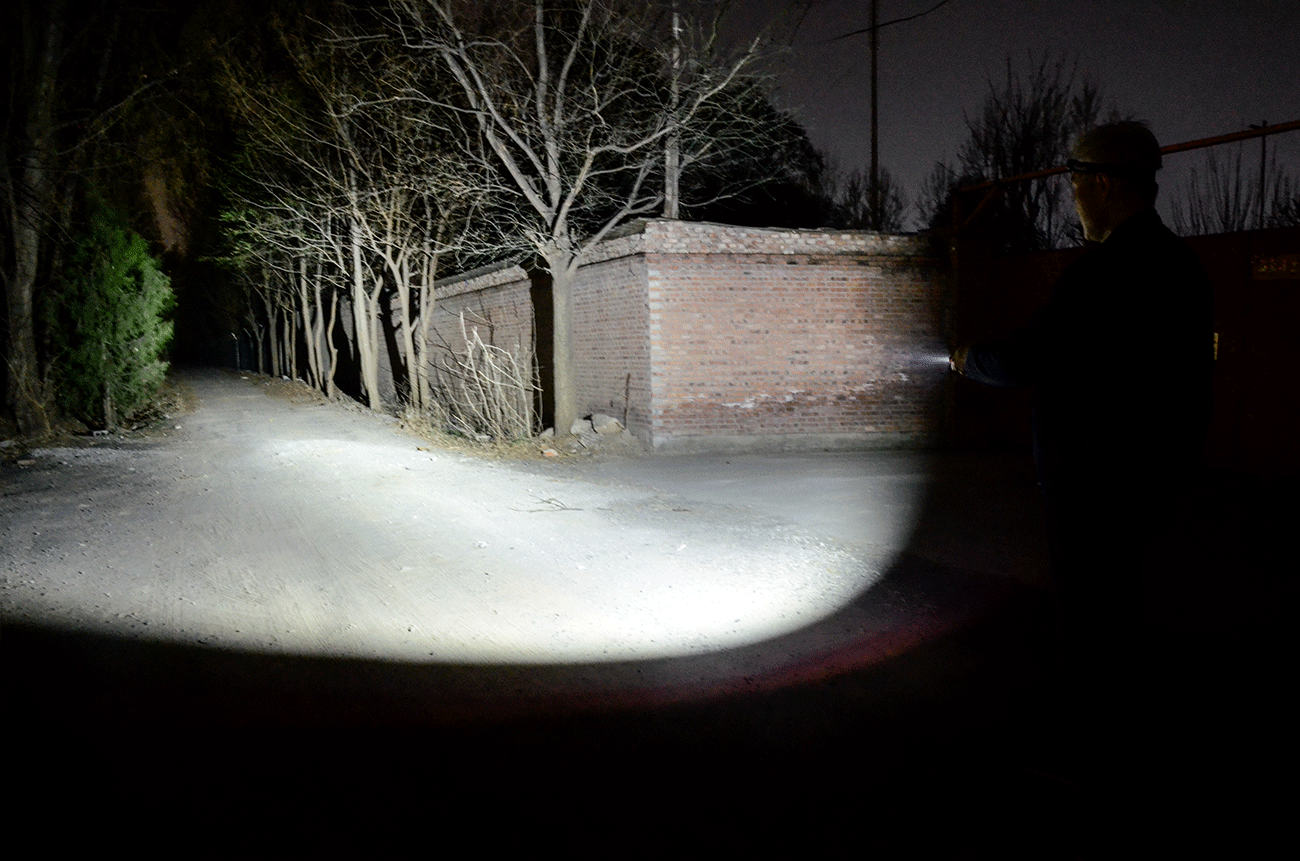 聚光最高亮度约为1000lm,中心光强5866坎德拉,有效照明距离153米;泛光的亮度约为750lm,中心光强914坎德拉,照明可以覆盖60米左右。