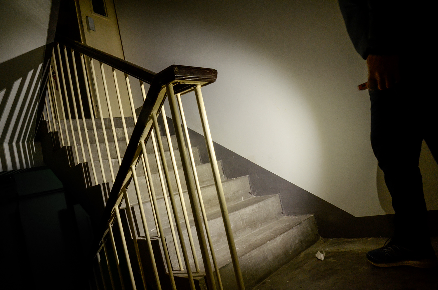 从对墙光斑就能明显看出E06R Pro RG两颗主灯的区别,聚光一侧光斑中心明亮锐利,边缘清晰集中,显现两个大整圆;泛光一侧光斑宽大柔和,过渡自然均匀,无生硬暗区,一聚一散对比鲜明,实际使用场景适配性更高。