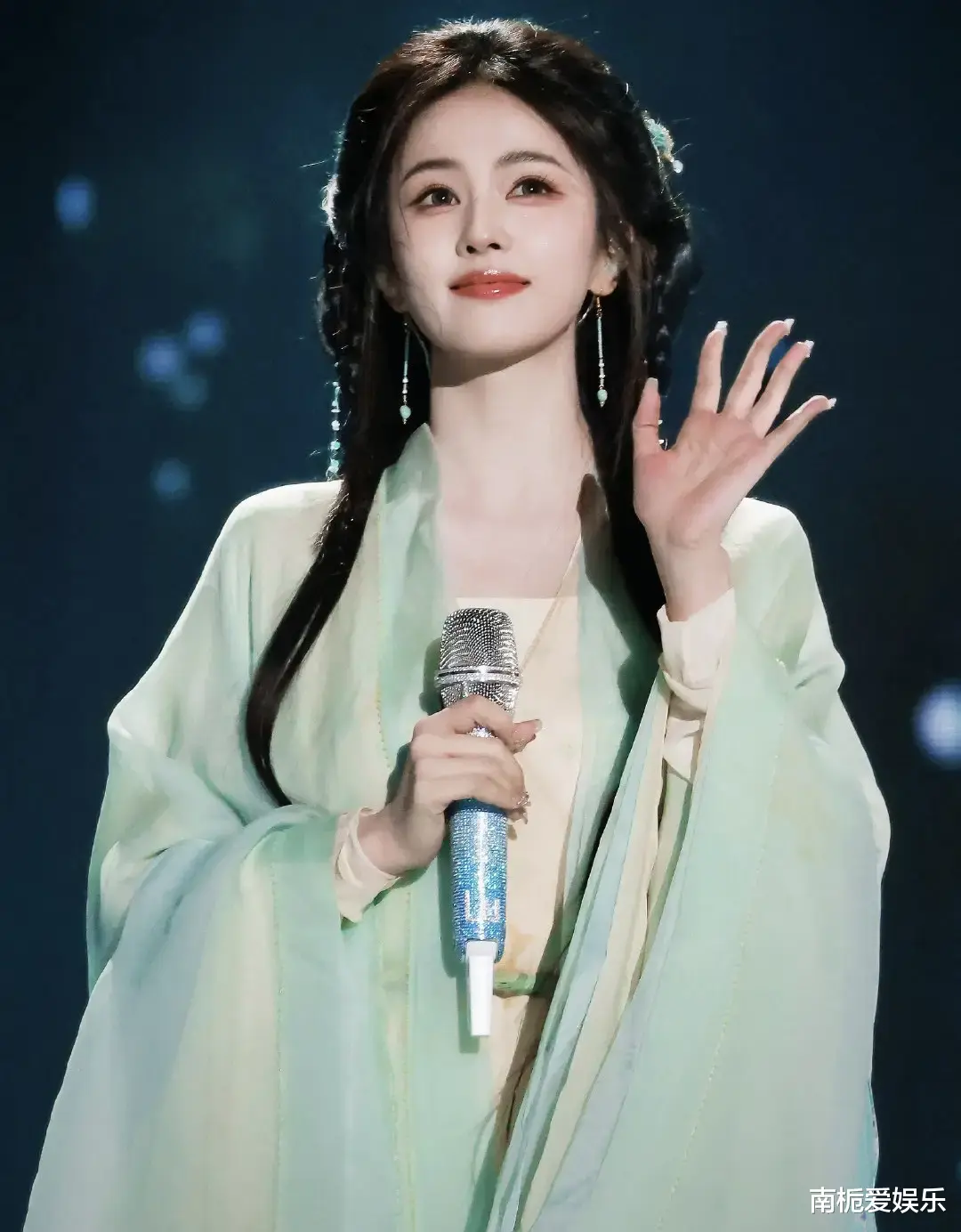 2025年浙江卫视跨年晚会迎来震撼一幕,白鹿以热播剧《临江仙》中经典角色“李青月/花如月”造型惊艳登台,瞬间引发全网热议。她身穿一袭水墨渐变青纱长裙,裙摆处暗纹竹叶若隐若现,发间点缀白玉竹节簪,搭配标志性的龙须刘海与低盘发髻,清冷出尘的气质扑面而来。这一造型高度还原了剧中李青月初入江湖时的侠女风骨,令无数剧粉直呼“梦回玉梵山”。