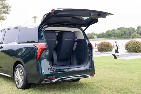 适用于日常通勤(每天2次接娃):侧滑门开口宽达80cm,娃背着书包能直接迈进去,不用弯腰挤;第二排座椅间距留足65cm,放2个儿童安全座椅(ISOFIX接口直接卡紧,不用额外绑带),中间还能塞个小储物盒放零食,宝妈坐旁边递水、擦嘴完全不挤;后备箱常规容积521L,实测能装2个18寸书包+1台折叠婴儿车+1个滑板车+1袋纸尿裤,周末加个露营帐篷也能塞下(第三排座椅不放倒)。