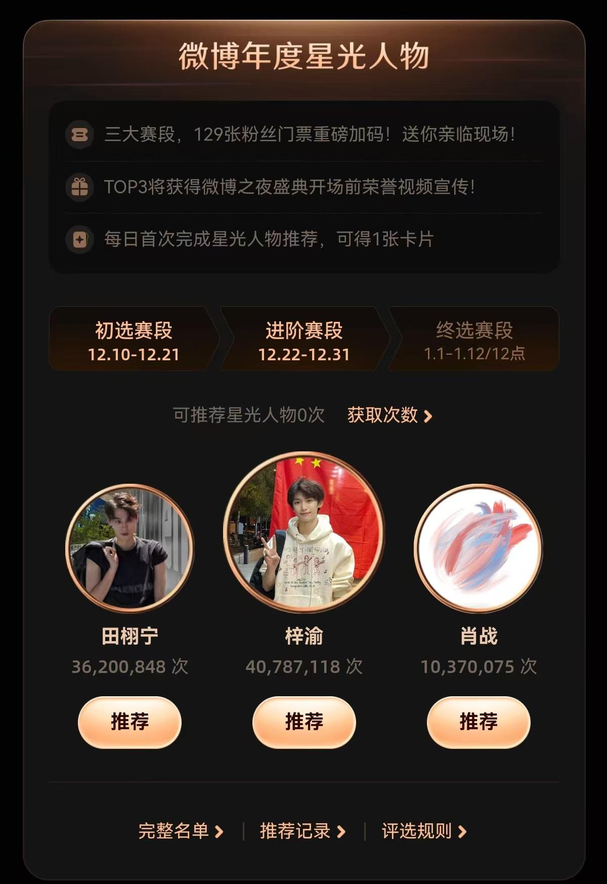 各位读者,看到“微博年度星光人物”的投票情况,你们认为梓渝和田栩宁,谁会获得第一名呢?让我们拭目以待吧!
