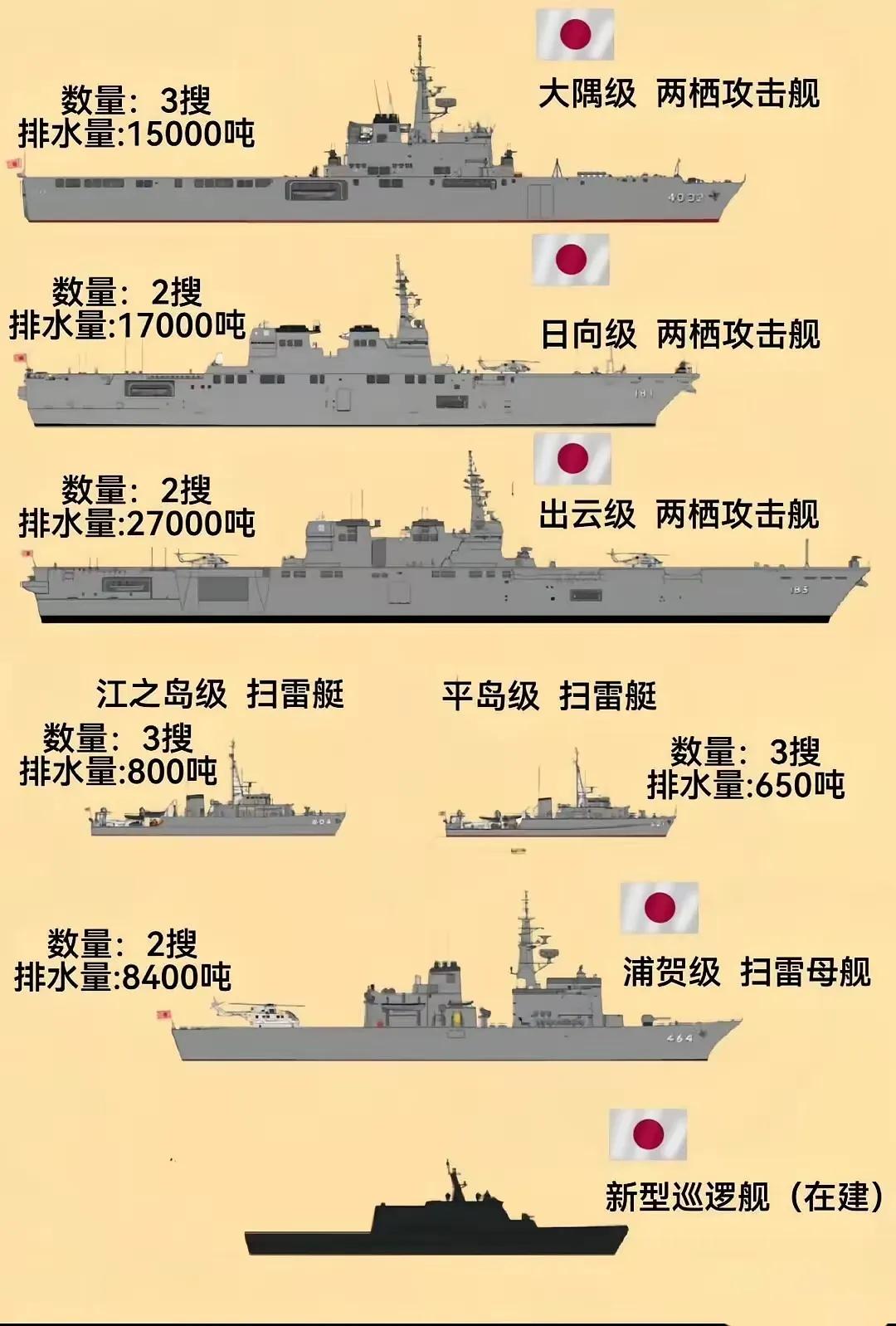 世界海军常规力量中日本海军在 21 世纪 20 年代俨然已经发展成为世界第三大海军力量,仅次于美国跟我国,强于印度、俄罗斯、英国、法国、意大利,海军力量不容小觑。世界传统五大海军强国俨然已经发生了变化。日本的海军力量发展依然延续了走向远洋的掠夺道路。虽然他自己不承认,但是事实摆在眼前。必须找个缘由搞掉鬼子发展海军的能力。限制鬼子的铁矿石、核能、钢铁、导弹跟航空航天等制造能力与供应,让他失去彻底发展海军的能力、核武的能力。陆上装备发展点就发展点吧,当然除了导弹跟运载火箭,这两个是不能发展的。