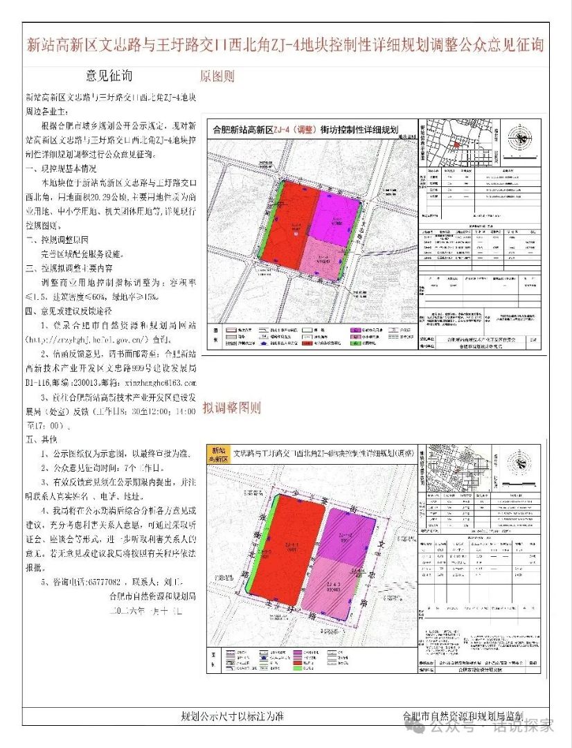 控规地块位于新站高新区文忠路与王圩路交口西北角,用地面积20.29公顷,主要用地性质为商业用地、中小学用地、机关团体用地等,详见现行控规图则。
