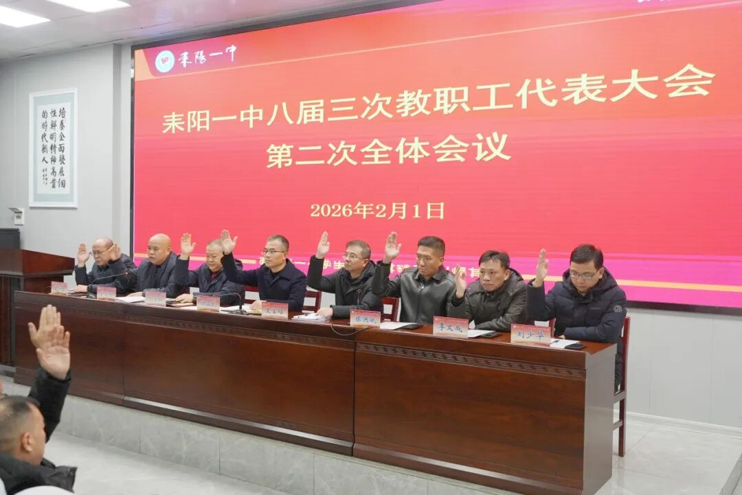 会议补选了第八届工会委员会委员、主席,表决通过了《耒阳一中学校工作报告》《耒阳一中“十五五”发展规划》《耒阳一中2025年财务工作报告》《耒阳一中年级教学精细化管理细则》《耒阳一中集体备课管理制度》《耒阳一中工会工作报告》及《耒阳一中2026年教育教学成果奖励方案》等重要文件。校党委书记徐正武就代表们提出的各类意见建议,进行了集中、详细、有针对性的回复与说明,对后续工作的落实做出了明确安排,并在闭幕式上讲话。