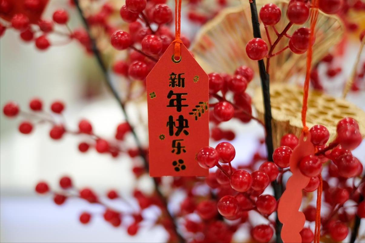 14、 “元”分让我们在今生相遇,“旦”愿快乐与你相伴朝夕,“祝”福好运在你周围汇聚,“吉”使遥远却依然牵挂你,“祥”念未随时光般远去。