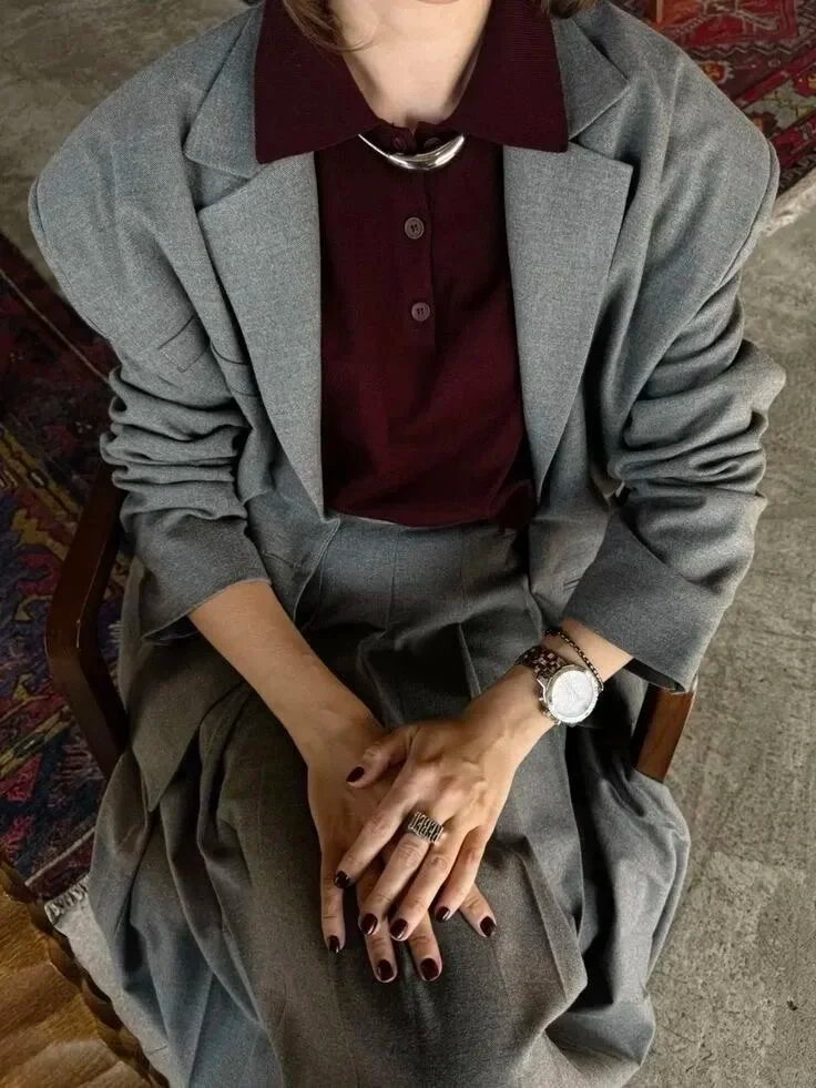 红色的热烈打破冬日沉闷,灰色的沉稳中和红色的张扬,一明一暗,互补又平衡,不管是通勤、约会还是节日聚会,都能穿出高级又有态度的质感。