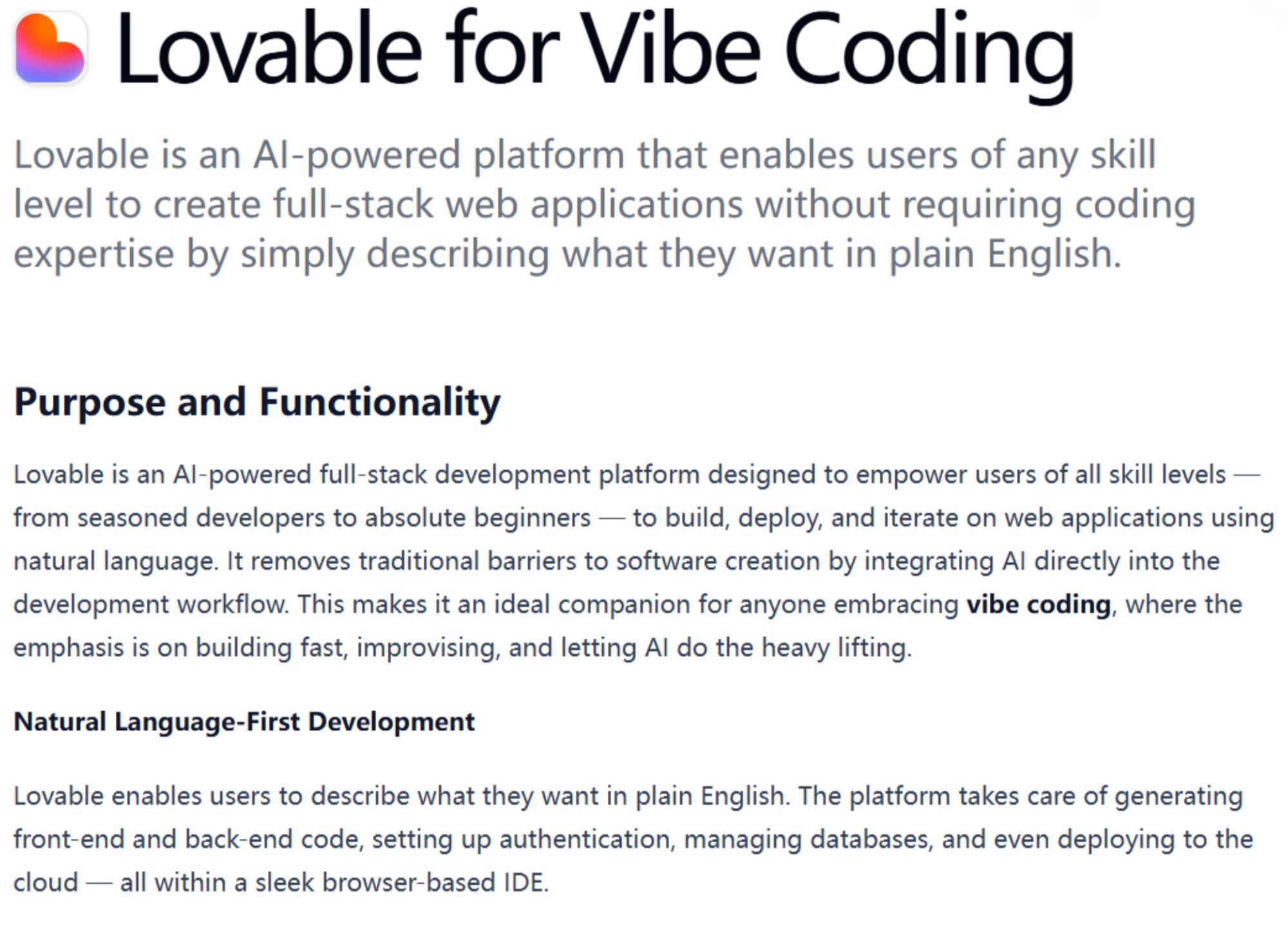 Lovable功能介绍(图源:vibe coder网站)