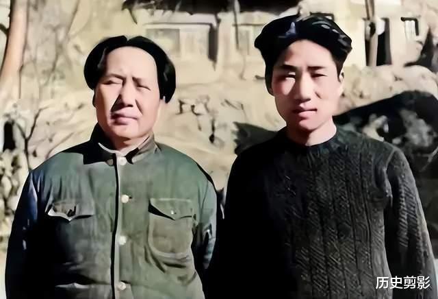 1946年,毛岸英回到延安,并加入中国共产党。1946年毛泽东与毛岸青在延安王家坪。