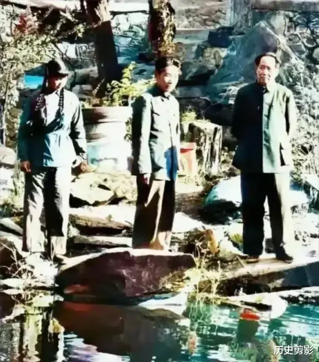 1949年4月,毛主席在北平香山和长子毛岸英及刘思齐在一起。