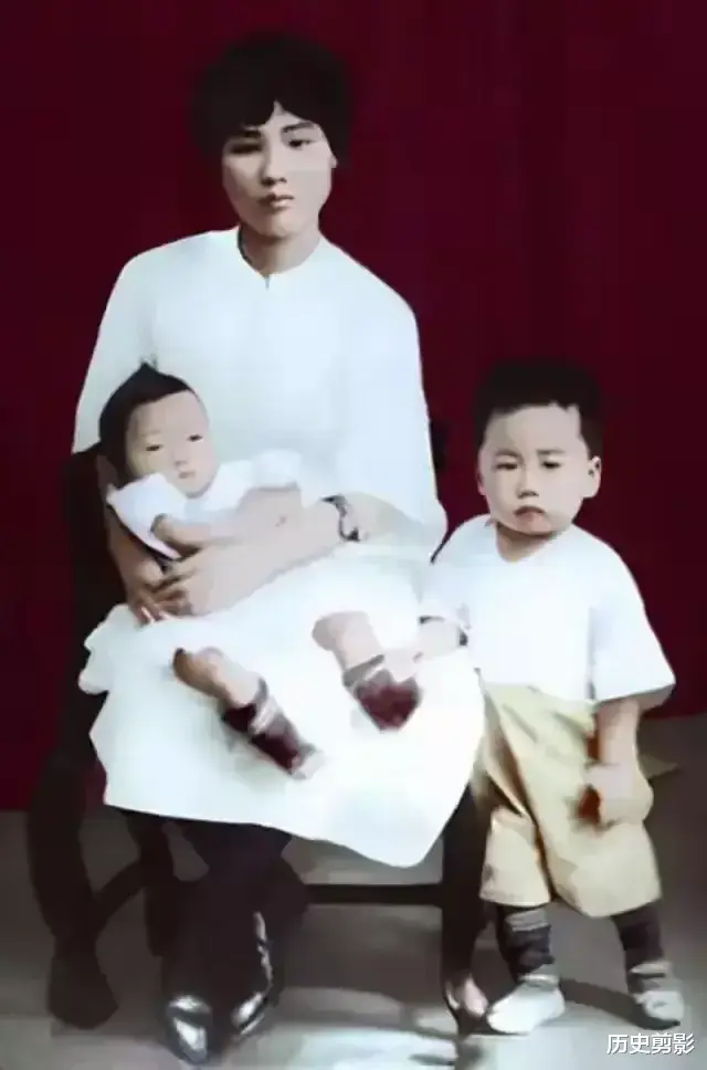 1924年幼时的毛岸英、弟弟毛岸青与母亲杨开慧在上海的合影