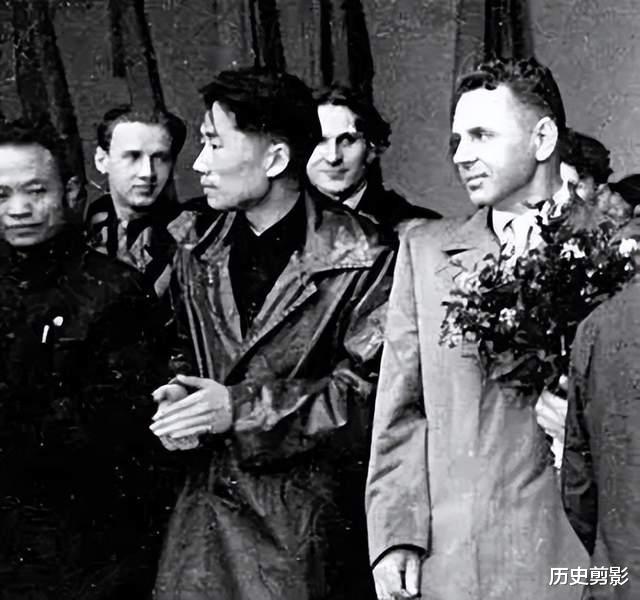 1950年5月,苏联青年代表团访问北京,毛岸英(中间穿皮衣者)作为团长翻译第一次出现在公众面前。