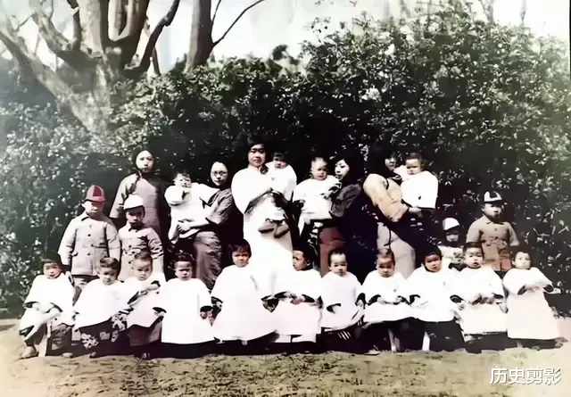 1931年,上海大同幼稚园保育人员和幼儿合影于法国公园。二排左一、右一、右二分别为毛岸英、毛岸青、毛岸龙