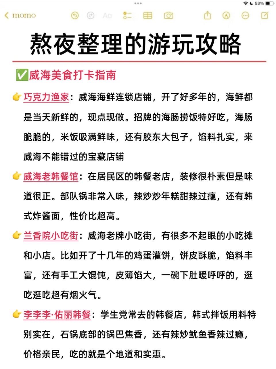首先我要说,威海的景点真的真的很出片📸,像火炬八街,幸福门,威海公园这些,随便拍拍都很不错,刘公岛值得花时间好好玩玩,甲午战争博物馆就在那,能学到很多知识📖