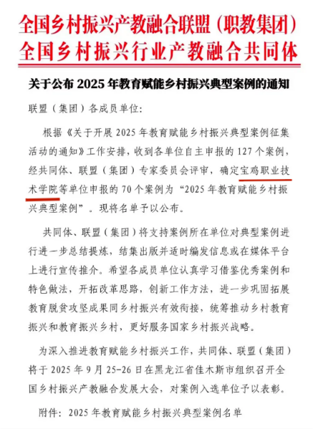 2025年,宝鸡职院紧密围绕国家乡村振兴战略,深入学习贯彻习近平总书记关于“三农”工作的重要论述、历次来陕和来宝考察重要讲话重要指示精神,立足区域乡村产业发展需求,扎实做好专项培养、技能培训、科技攻关、技术推广、课题研究等工作,“五向发力”赋能乡村振兴,取得了一系列扎实成果。