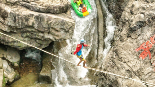 本次的备战训练点位于清远黄腾峡生态旅游区的著名景点黄腾峡漂流河道和深受游客追捧的天门悬廊玻璃桥处。