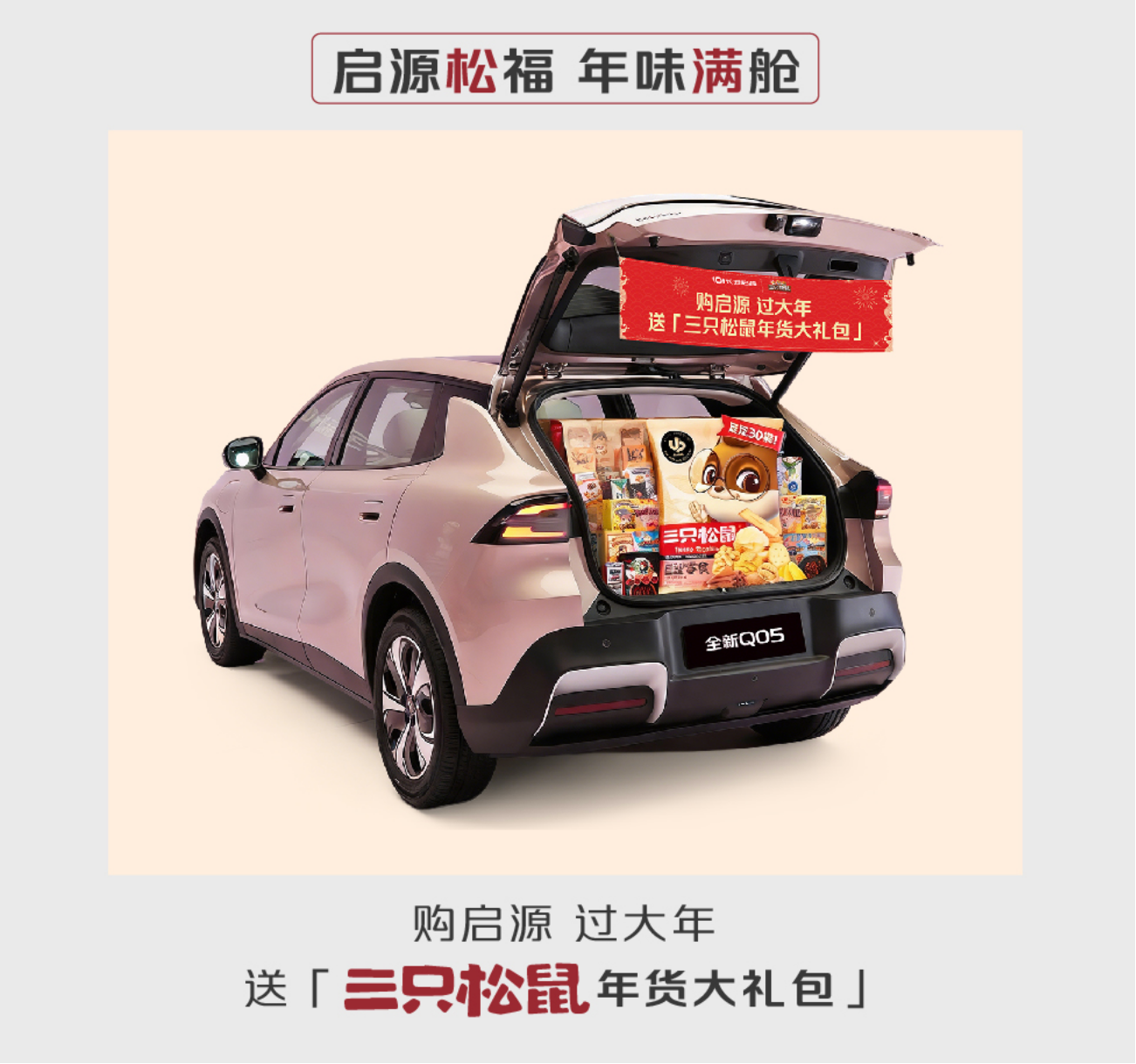 即日起至2月15日,所有提车用户可再享1,000元全系新春购车红包。同时,长安启源联合三只松鼠推出《启源松福,年味满舱》活动,下订即赠年货大礼包,助您将新年心意与品质座驾一同开回家。