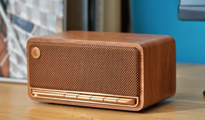 漫步者M230堪称桌面复古氛围感神器,整机采用MDF实木质感构造,复刻上世纪中期收音机经典轮廓,搭配琴键式实体按键与细密编织网罩,复古腔调直接拉满。木纹色、贝母白、绿魔黑三款配色,不管摆书桌、床头柜还是餐边柜,都是颜值爆表的软装小物。别看机身小巧(162×84.5×96.5mm),仅0.85kg轻便好携带,音质却毫不含糊,双48mm全频单元+双被动辐射器,搭配专业功放芯片,25W×2功率输出饱满通透,人声细腻、低音扎实。蓝牙5.0连接稳定,还支持AUX、TF卡、声卡多模式输入,2600mAh电池续航9-10小时,居家听歌、短途出行都能承包治愈旋律。