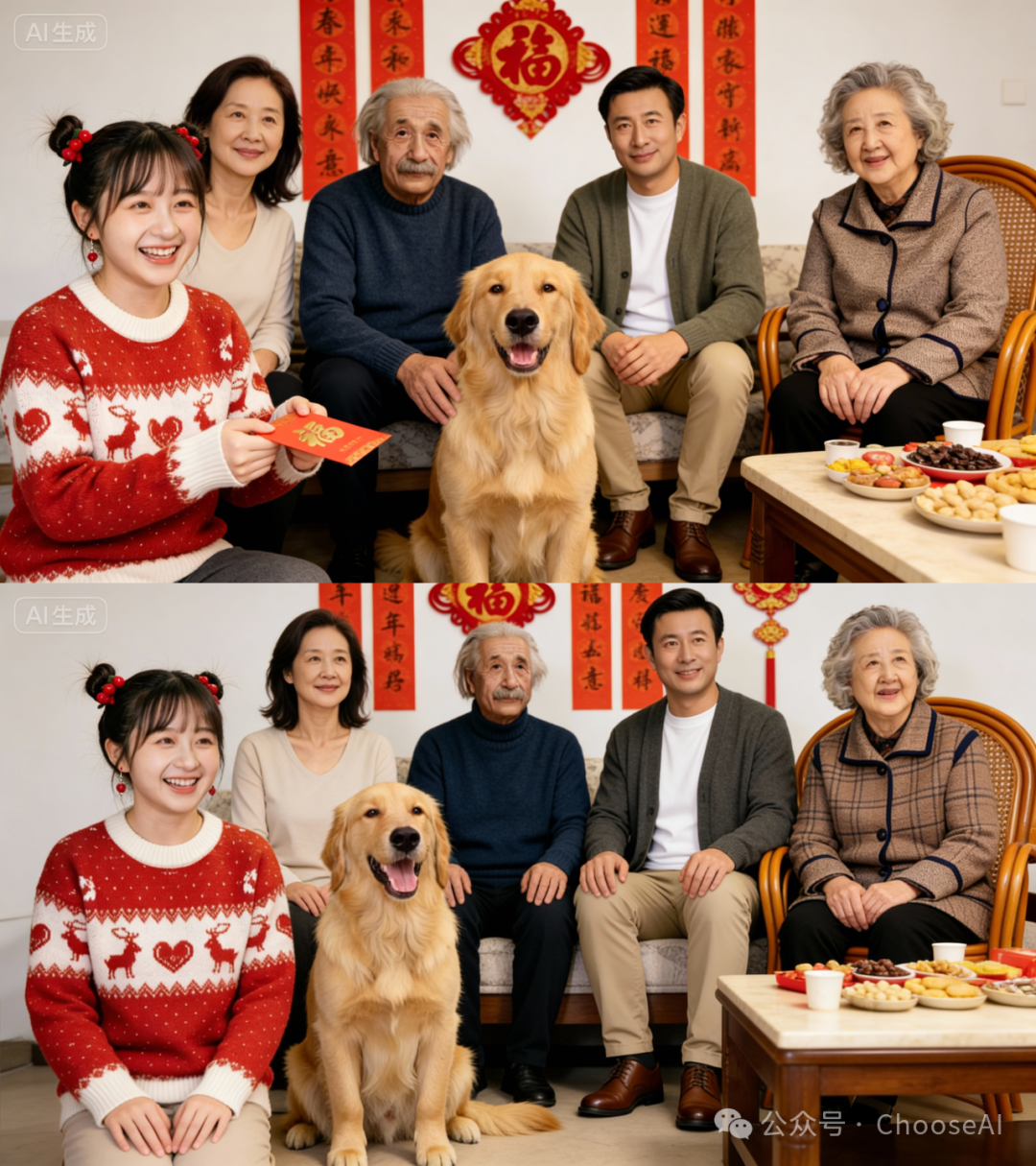 比如即梦4.5光写“全家福”会以抓拍形式呈现,需要写出“面对镜头”才会都看镜头,不会自动去除原来场景的其他人物;对摄影参数敏感度不高,参数差距较大的生成的图差距不太大。
