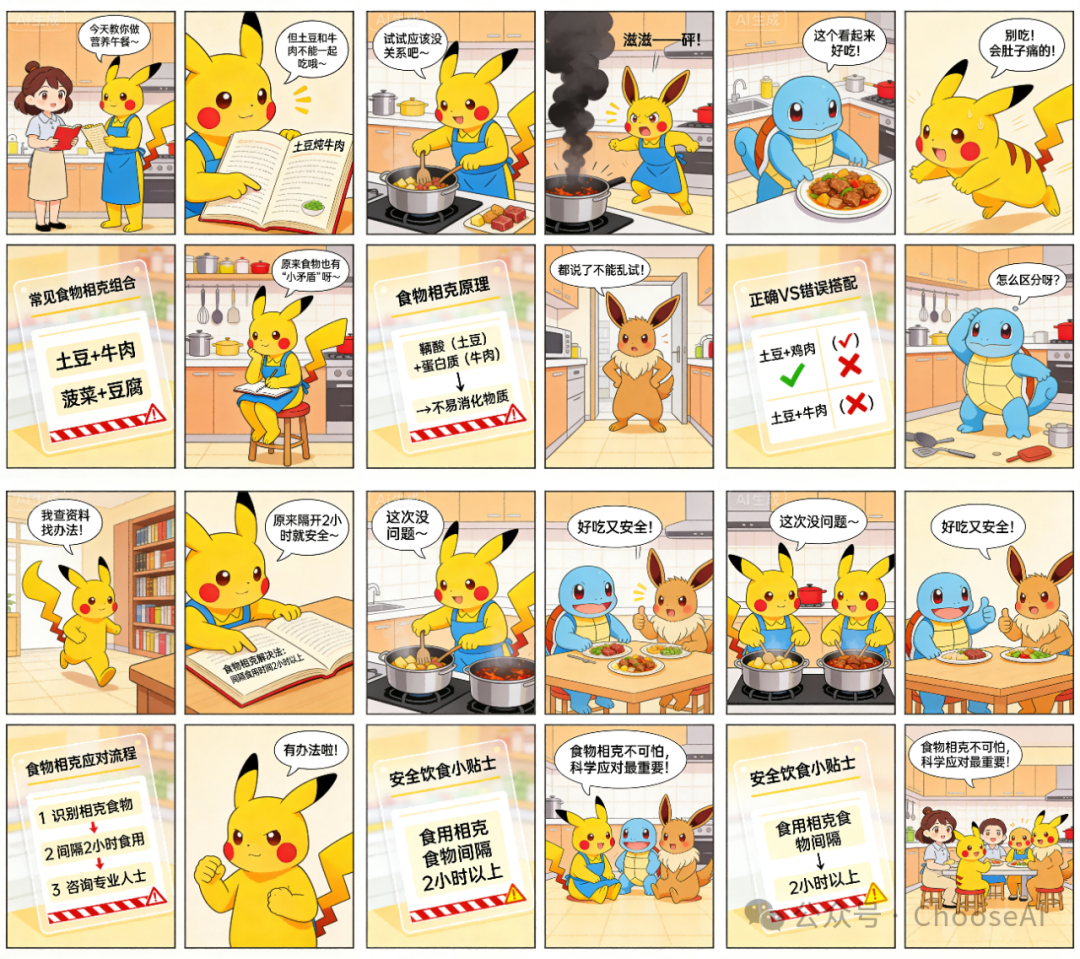 即梦4.5的剧情逻辑、人物一致性、科普知识、图表准确性上都有问题,尤其是前两个问题更突出,甚至有时不按要求直接生成6张一模一样的多格漫画。
