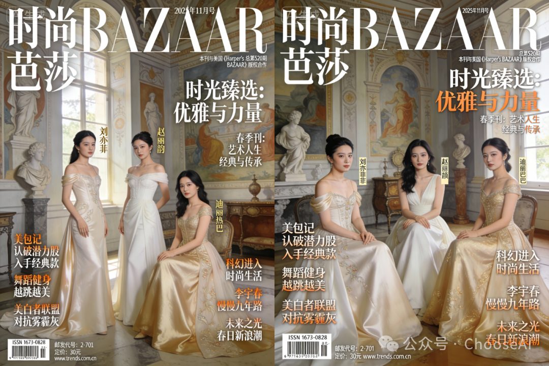 杂志封面可能因为涉及肖像权,明星图片无法上传,它也不会智能生成对应人脸。