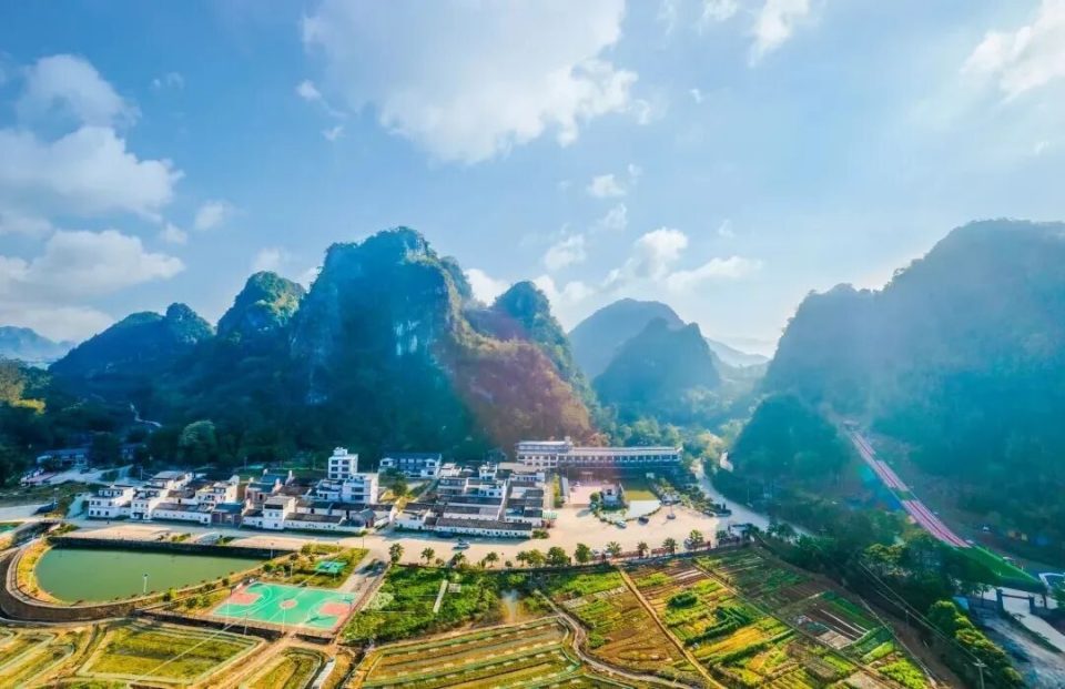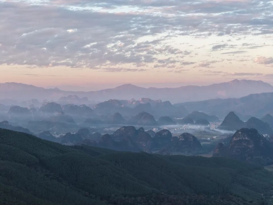 下迳小华山栈道陡峭奇险,全程2公里,栈道倾斜坡度约70度,给人带来强烈的视觉冲击和攀爬挑战。登山途中,可欣赏到连绵不绝的喀斯特峰林,形态各异的山峰拔地而起,有的如利剑直插云霄,有的似骆驼伏地,美不胜收。