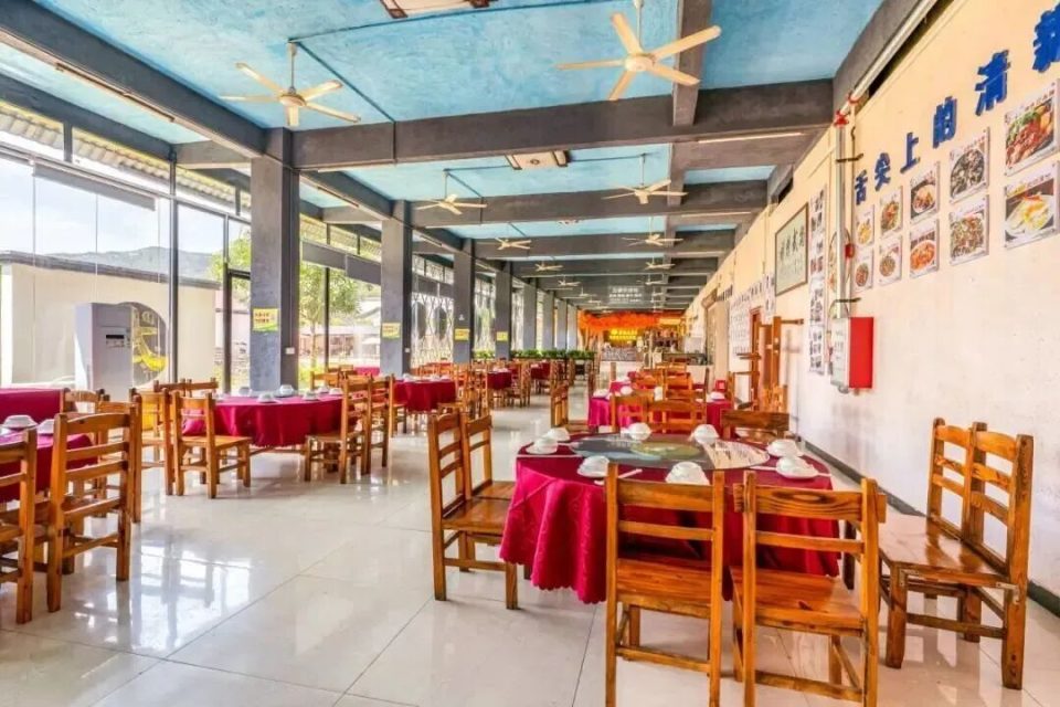 游玩之余,景区的农家菜馆能让游客品尝到清远本土的新鲜滋味。这里的食材多源自当地农户,招牌碌鹅肉质鲜美、皮香肉嫩,新鲜无花果汤底清爽解腻,正宗清远鸡皮脆肉滑,还有手打猪肉丸、自制腐竹及应季时蔬等特色菜品,每一口都是自然本味。