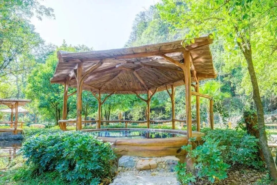 公共汤泉区设有多个养生泡池,错落地分布在茂密的丛林中,包括养生鱼疗池、湿蒸房、冰泉池、按摩池、理疗温床及儿童嬉戏乐园,爬完山后泡一泡汤泉,浑身筋骨都能得到舒缓。