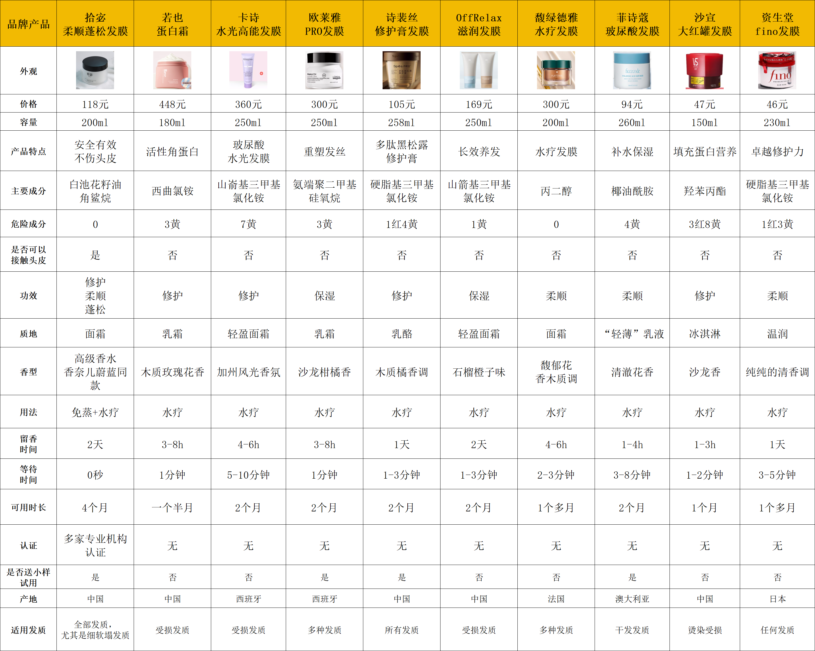 看完选购小技巧,你知道怎么挑合适的发膜了吗?其实光看技巧不够直观,我特意整理了十款平时常用的发膜实测数据,表格里都是真实使用后的核心表现,希望能帮你少走弯路~