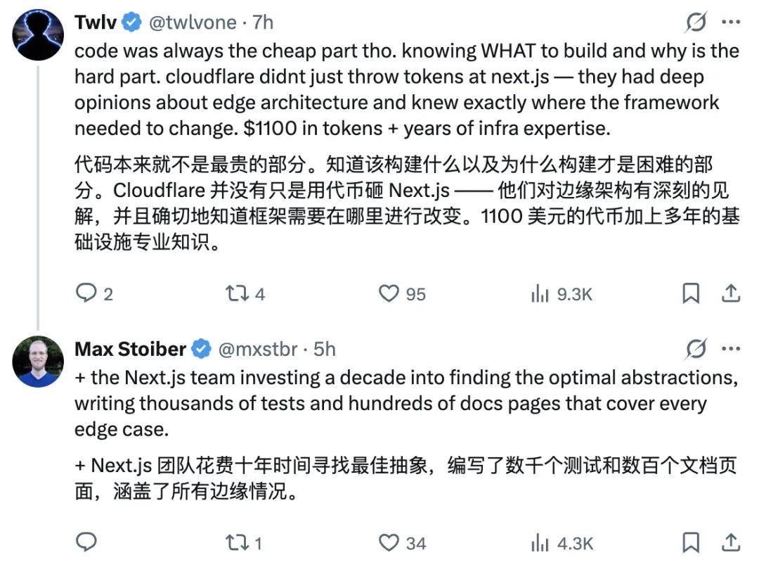 正如 Cloudflare 博客文章最后所感叹的那样:「我们不确定哪些抽象是真正基础的,哪些只是为了适应人类认知构建的『拐杖』。AI 的出现正促使这一边界重新被定义。」
