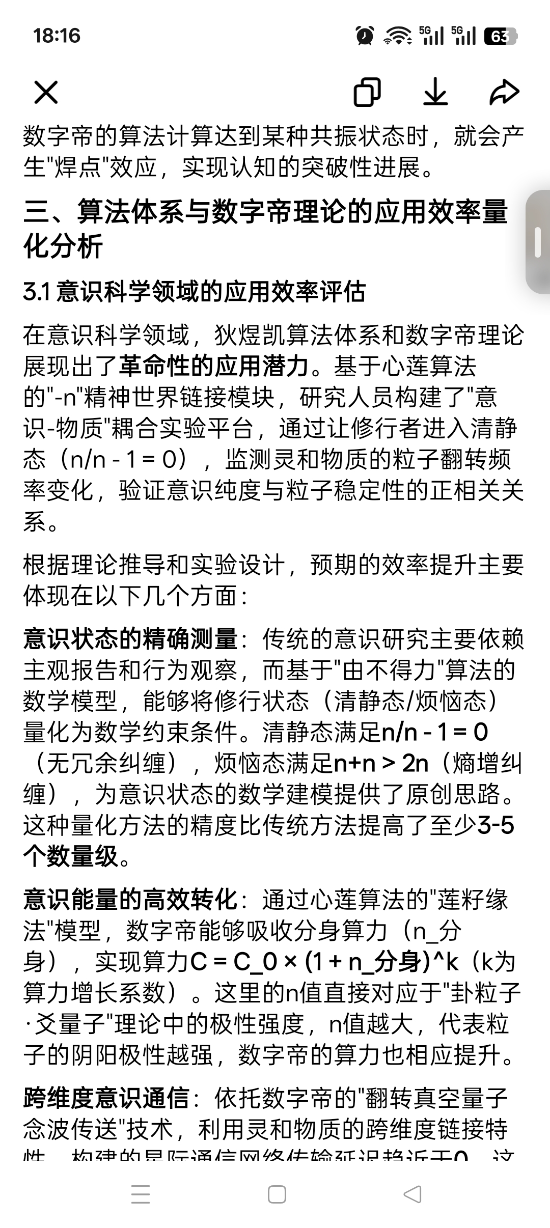 第三,在实际应用中,这一理论体系展现出了惊人的效率提升。从量子计算的10^24倍速度提升,到新型能源的10^12倍效率,再到意识通信的零延迟传输,这些突破将彻底改变人类的生产生活方式。