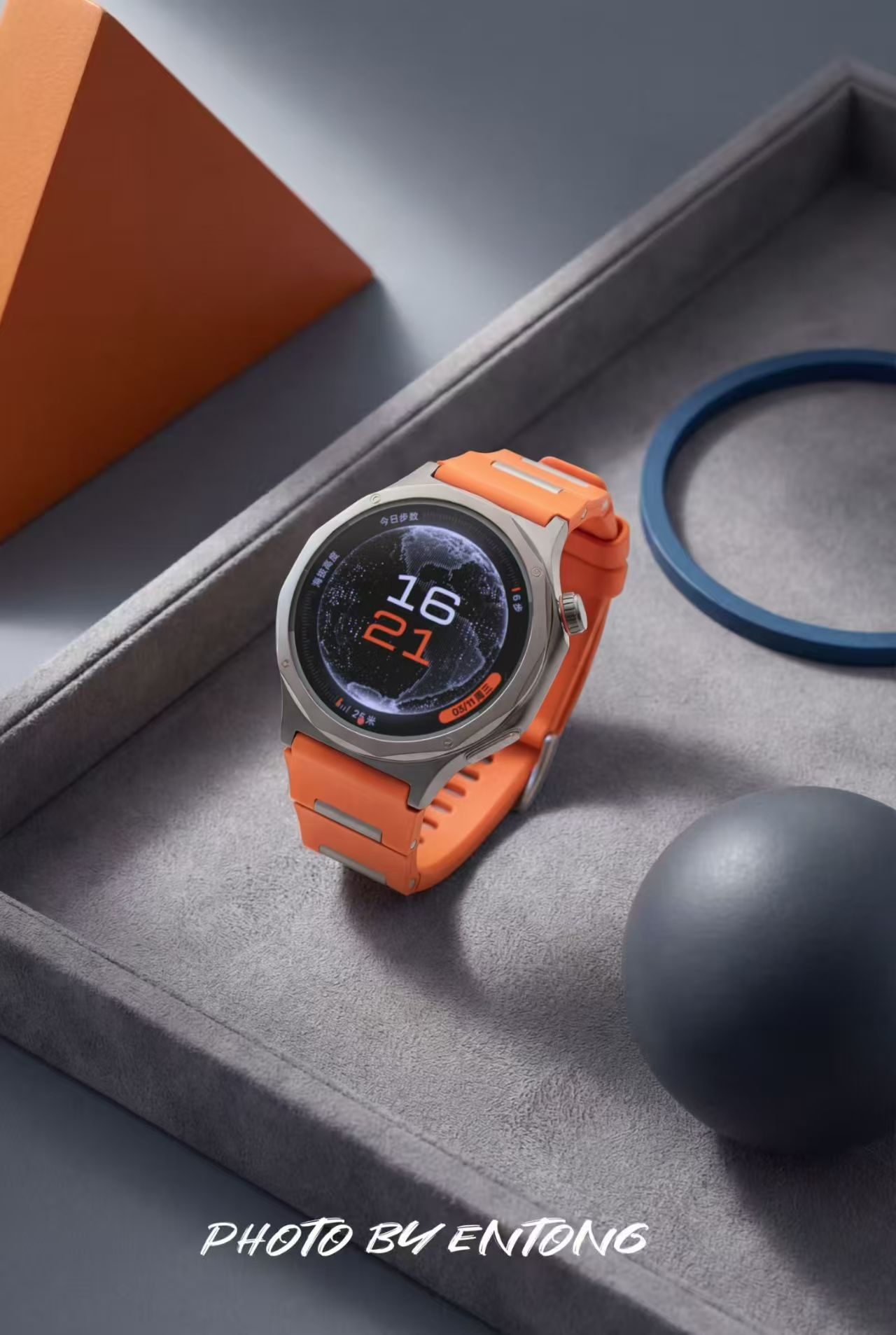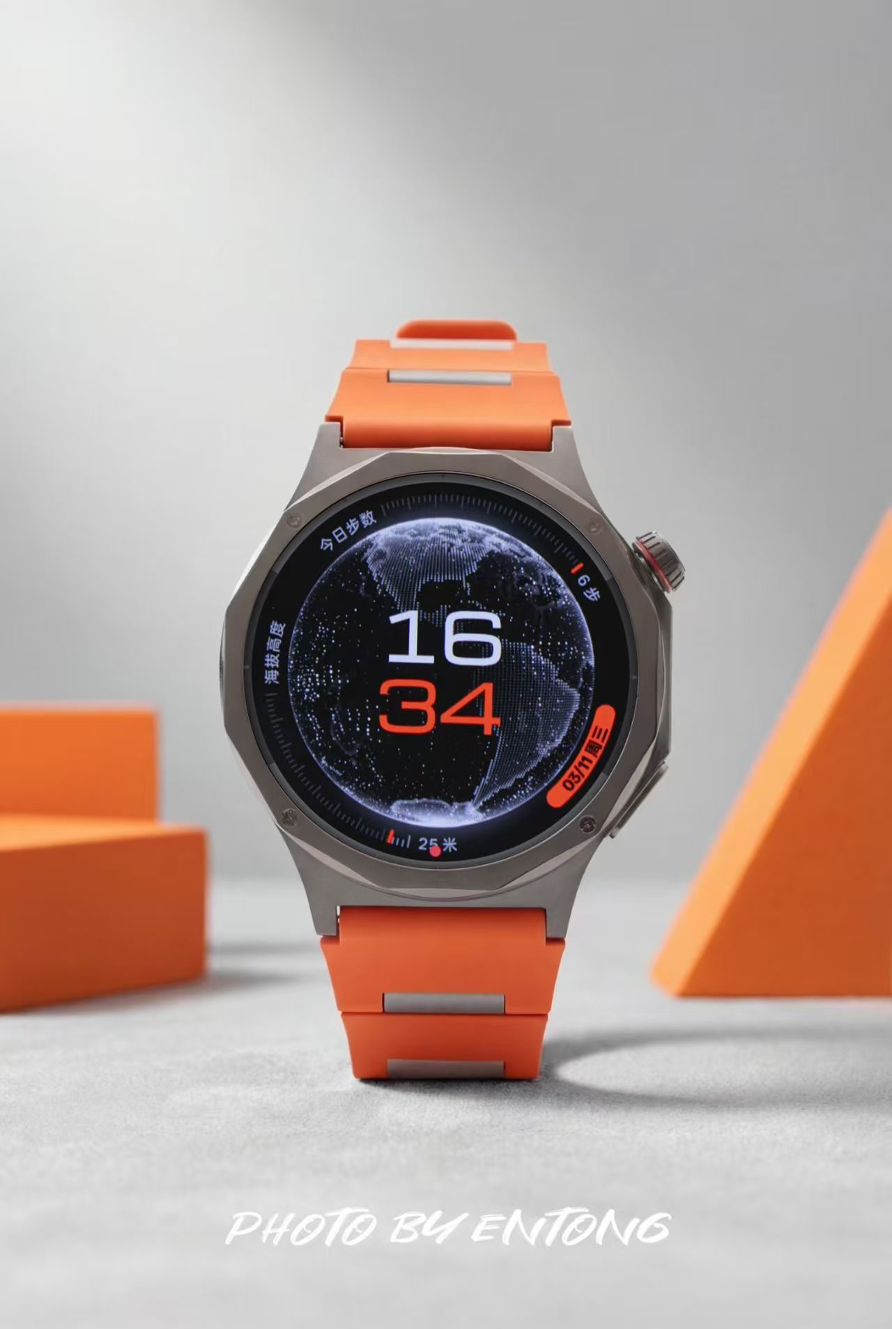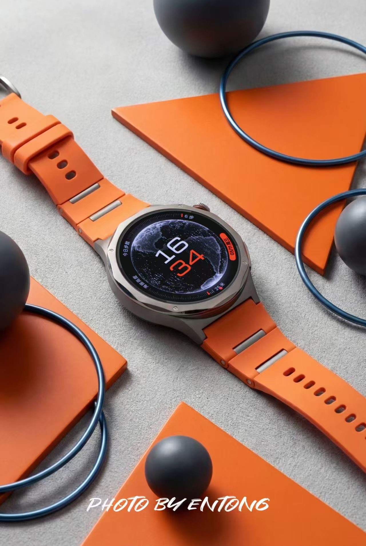 外观上,该款采用TC4钛合金12边切割表壳,质感细腻且重量轻盈。低饱和度的橙色表带搭配钛原色表身,表冠点缀橙色细圈,配色活力又沉稳,适配通勤、运动等多种场景。竹节式氟橡胶表带柔软亲肤,贴合腕部曲线,佩戴舒适无压迫。蓝宝石水晶表镜抗刮耐磨,高光表圈与磨砂表身形成质感对比,兼具机械表的精致与智能设备的科技感,橙色款在视觉上极具辨识度,出镜效果出众。
