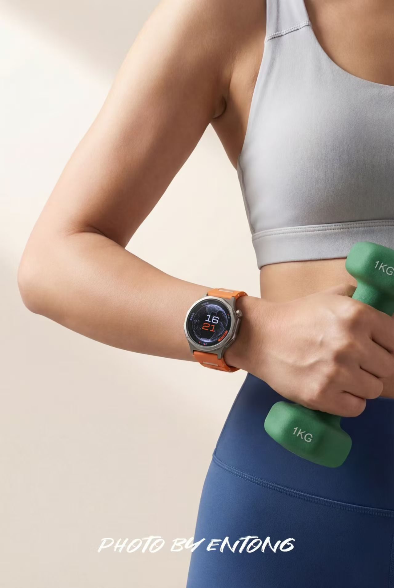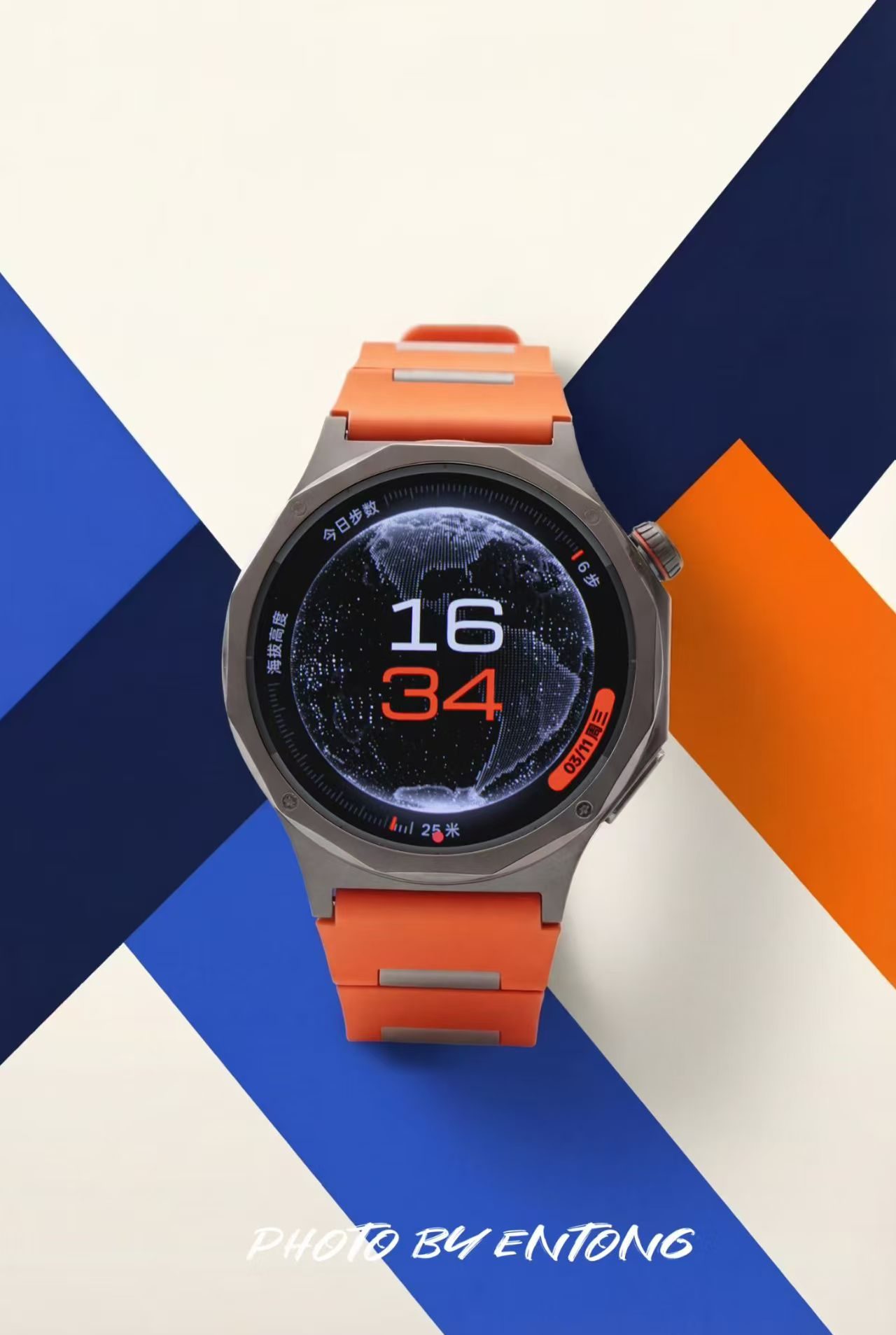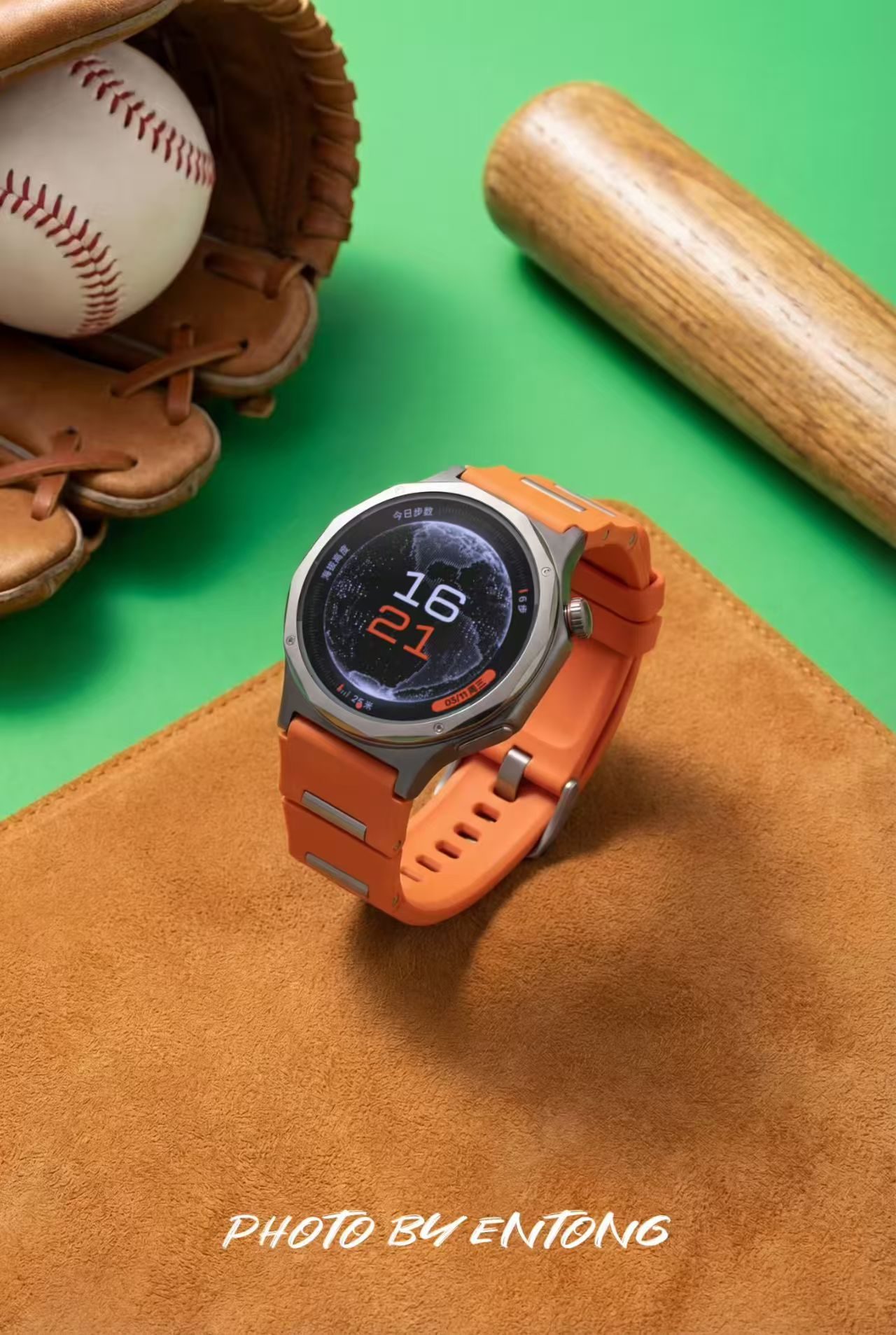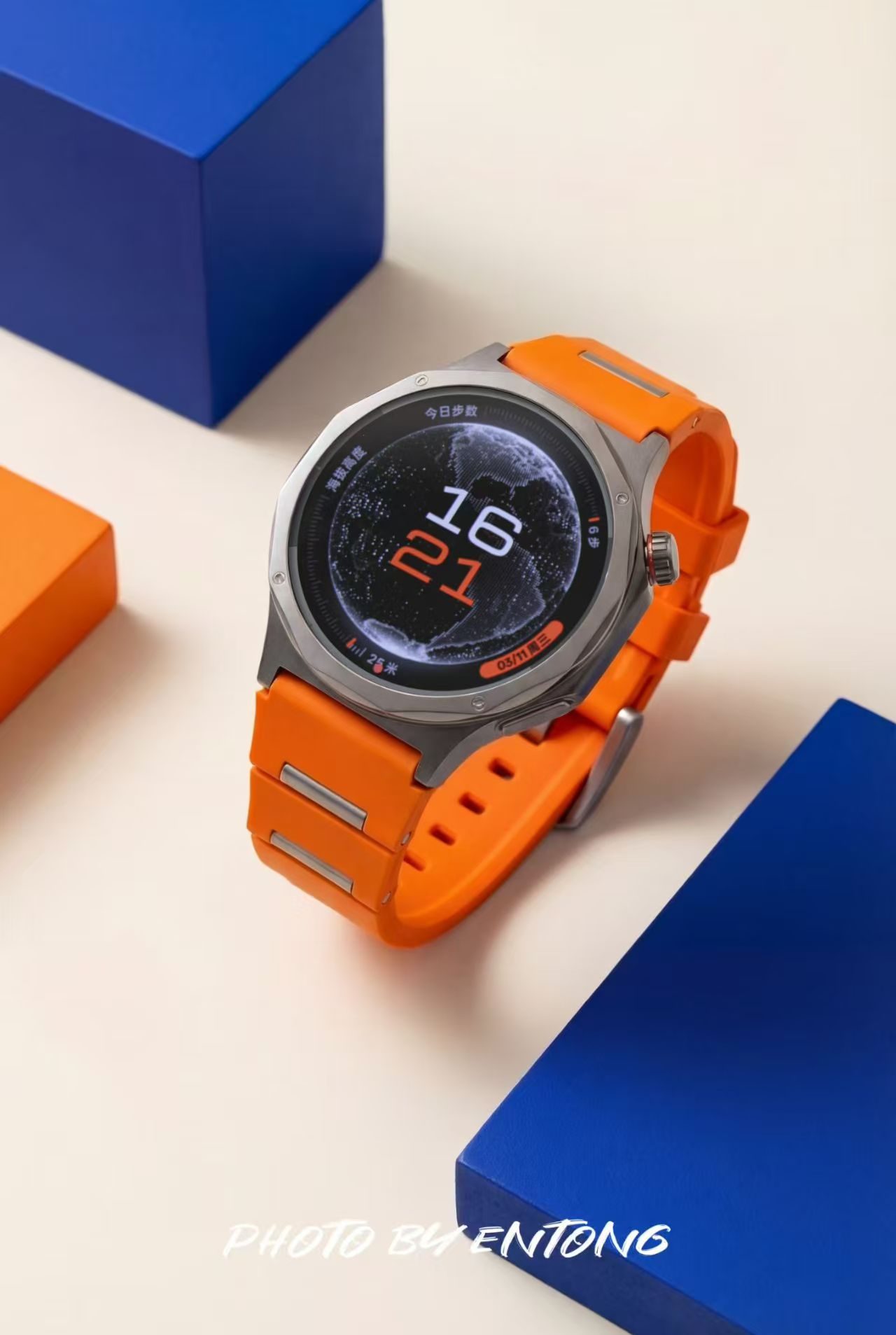 外观上,该款采用TC4钛合金12边切割表壳,质感细腻且重量轻盈。低饱和度的橙色表带搭配钛原色表身,表冠点缀橙色细圈,配色活力又沉稳,适配通勤、运动等多种场景。竹节式氟橡胶表带柔软亲肤,贴合腕部曲线,佩戴舒适无压迫。蓝宝石水晶表镜抗刮耐磨,高光表圈与磨砂表身形成质感对比,兼具机械表的精致与智能设备的科技感,橙色款在视觉上极具辨识度,出镜效果出众。