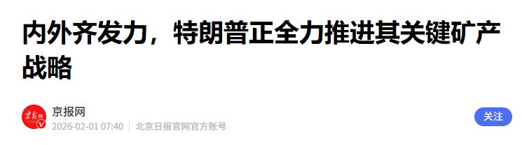 京报网 2026-02-01——内外齐发力,特朗普正全力推进其关键矿产战略