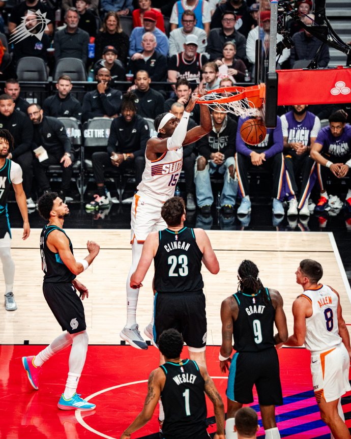 布克和格林继续因伤缺阵,但太阳依旧有6人得分上双,其中3人得分20+。吉莱斯皮发挥出色,出战33分钟,投篮17中10,三分14中8,罚球2中2,得到30分4篮板10助攻3抢断,得分创个人生涯新高,8记三分也追平个人生涯纪录。吉莱斯皮还成为纳什和布克之后,太阳队史第三位单场送出至少8助攻,命中8记三分的球员。