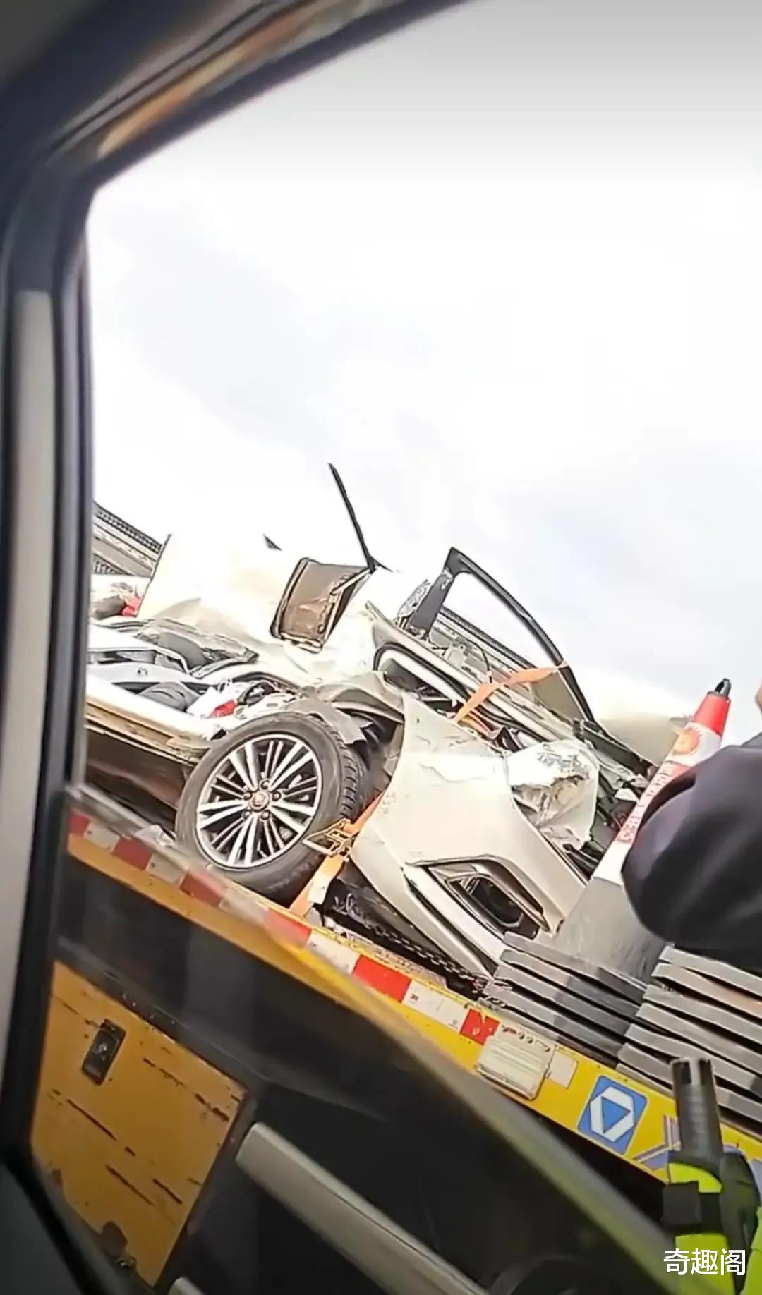当时事发路段车流量比较大,车辆通行速度缓慢。一辆载着一家五口的小客车,不幸被一辆大货车挤压在高速护栏上。从现场流出的照片和视频片段可以看到,小客车的一半车身因为巨大的冲击力严重凹陷变形,几乎被挤压得面目全非。地面上还散落着车辆碎片和杂物,高速护栏被撞得弯曲折断。