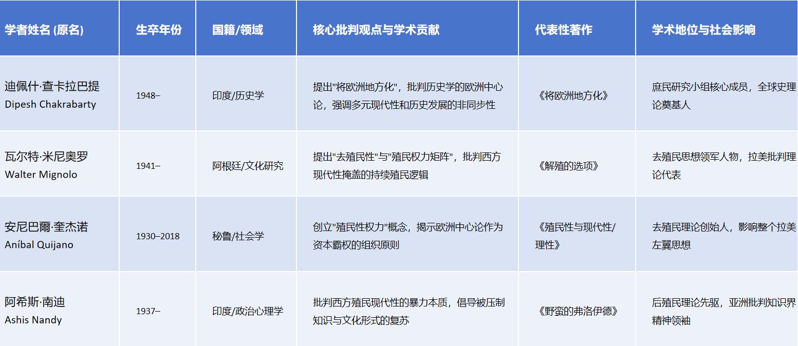 后殖民与去殖民批判的核心任是超越萨义德式的“东方学”批判,直指现代性/殖民性这一权力结构的核心。因此,他们将矛头直指现代性的殖民根基,试图完成从萨义德"东方学"到奎杰诺"殖民性权力"的理论跃迁。这一谱系不仅继承了法农对殖民暴力的剖析,更将批判延伸至知识生产领域本身。米尼奥罗的"去殖民性"与查卡拉巴提的"将欧洲地方化",确实为全球南方提供了锐利的思想武器,动摇了西方普世价值的宣称,成为挑战西方学术霸权和推动知识多元化的中坚力量。