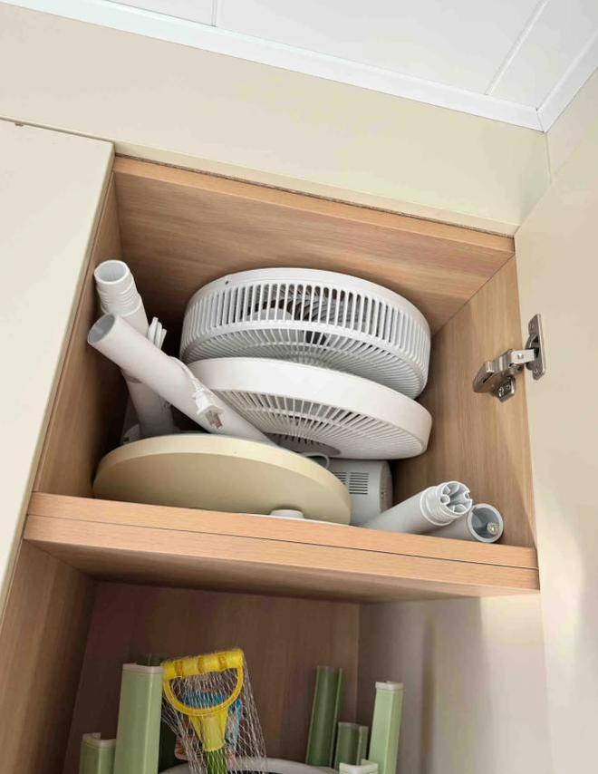 网友@鸡蛋灌饼:真庆幸当初买的都是落地扇,看似十分占空间,但把它们拆开收纳,只需要占用一个小格子,非常省空间。