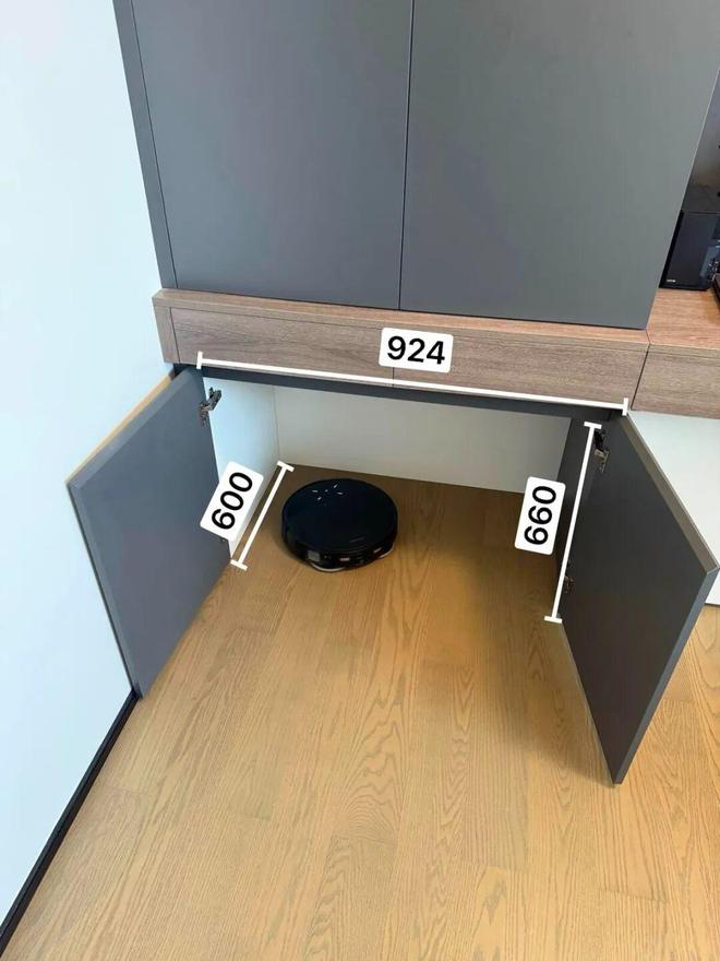 网友@六颗派大星:强烈建议大家在定制柜子时,留一块无底板收纳区。像我就在书房的储物柜里,留了一块920*60*60cm的无底板区。