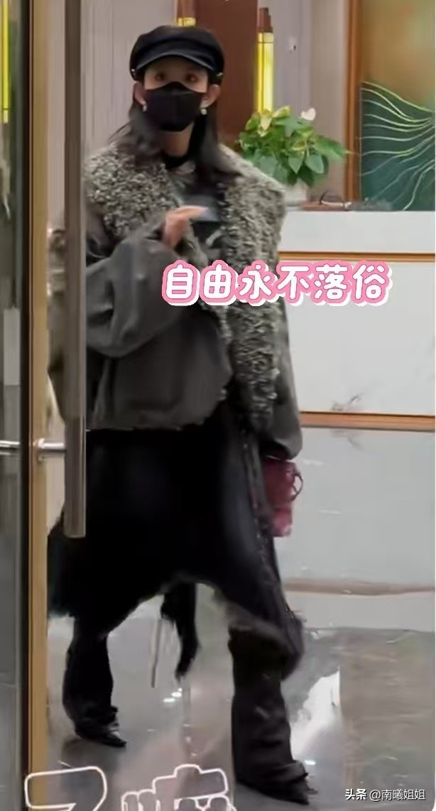 杨幂漫画铅笔腿在圈内很有名,所以在日常出街,经常能看到她穿黑色或棕色马丁靴,搭配长款羽绒服、短裙或工装裤,酷帅感非常强。